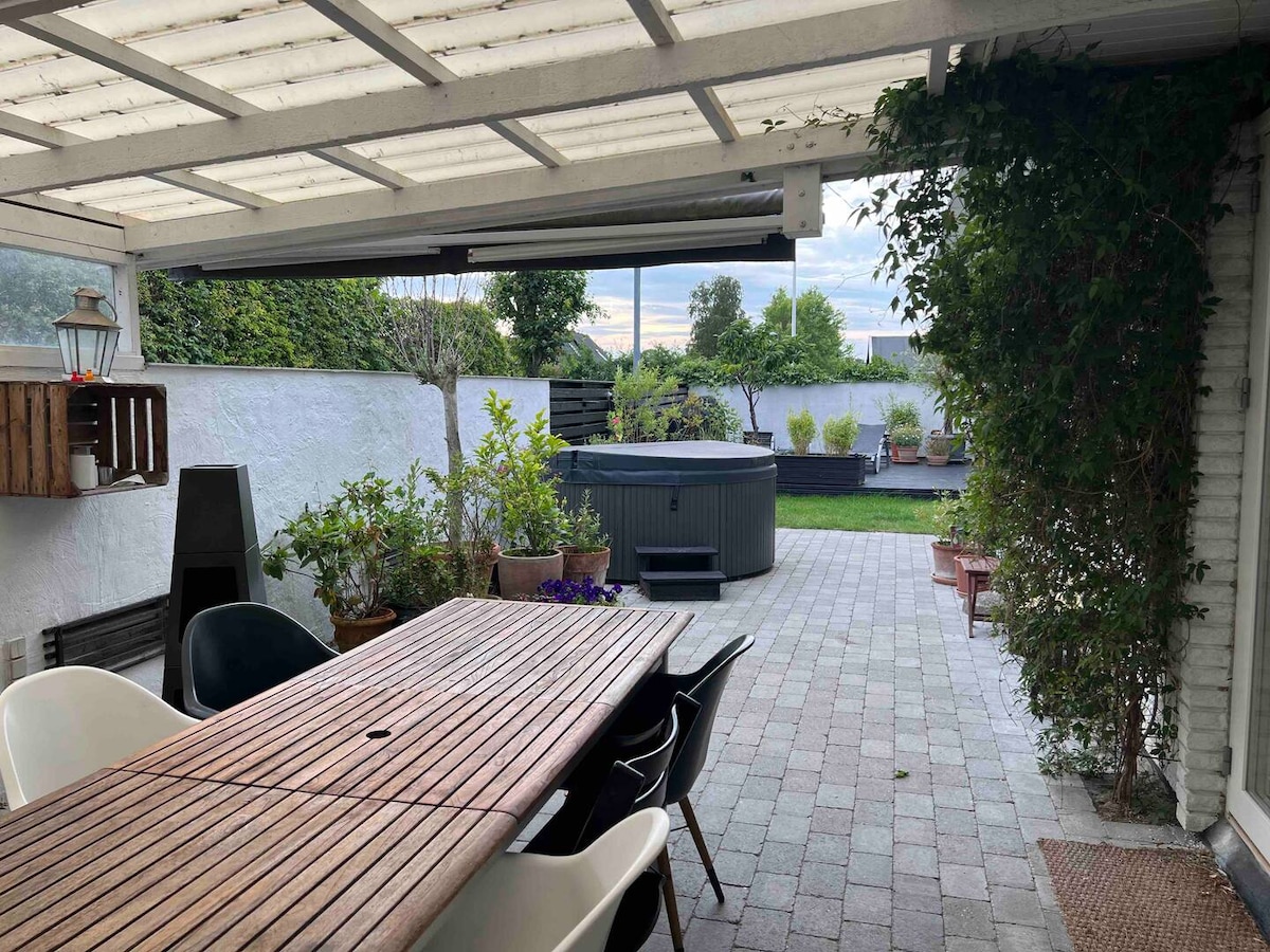Välkomna till ett nyrenoverat boende med väldigt bra kommunikationer till centrala Malmö och Köpenhamn. På få kvadratmeter har vi skapat ett smart och modernt compact living där vi tagit vara på varje kvadratmeter. Här finns möjlighet att ta promenader i lantlig miljö eller bara ta det lugnt på den privata uteplatsen (40 m2) med egen bubbelpool. Boendet - Hyllie station (där Emporia köpcentrum ligger) tar det 12 minuter med buss. Hyllie station - Köpenhamn centrum tar det 28 min med tåg.