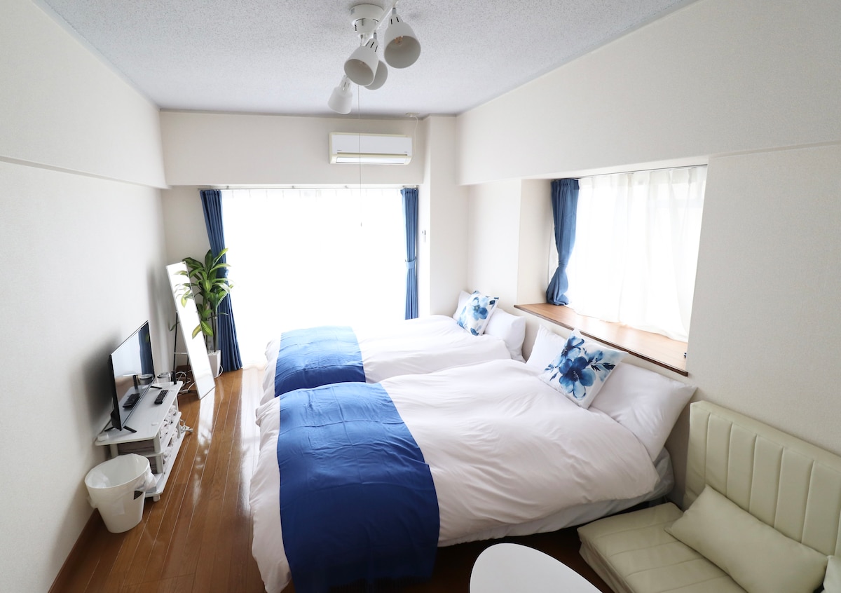 距离博多站筑紫口6分钟步行距离。将公寓的一间房改建为酒店。1张双人床,面积24平方米