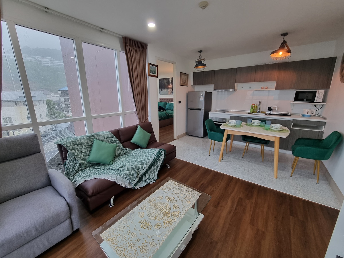 公寓毗邻kata夜市。距离卡塔海滩:500米;卡伦海滩:900米;楼下有多个旅游商店、ATM取款机、钱币换汇店、租车店、按摩服务、当地海鲜市场和24小时的711便利店。 餐饮:附近由许多国际餐厅,专门提供泰国,意大利,日本,中国和印度美食的餐厅。可找到音乐酒吧。 运动:附近由冲浪俱乐部、迷你高尔夫球场、网球场、立式桨板滑翔和帆伞运动。 房间介绍 房间设有1间卧室和1间客厅,大阳台,厨房和厨具和冰箱(可烹饪)。主卧一张双人床,客厅有一张沙发床,可容纳最多3人。浴室与干湿分离,配有浴缸和淋浴区,提供24小时热水和wi-fi无线网络。 其他注意事项 仅允许在阳台吸烟,房间内禁止吸烟。 房费不包含每日清洁费,瓶装水和纸巾,因为我们尽量保持低廉的每日价格,以保障房客的利益。我们只收取1次清洁费,用于支付退房清洁费。 如果您需要清洁服务,可以提前至少一天预订,但需支付额外费用。 房客使用权限 房客可以使用公寓社区&小区的公共设施。 社区配置: *免费停车场 * 两个无边游泳,天台无边泳池 * 屋顶健身房 *儿童游乐室 * 地面泳池酒吧 *一楼24小时接待大堂 *24小时安保服务