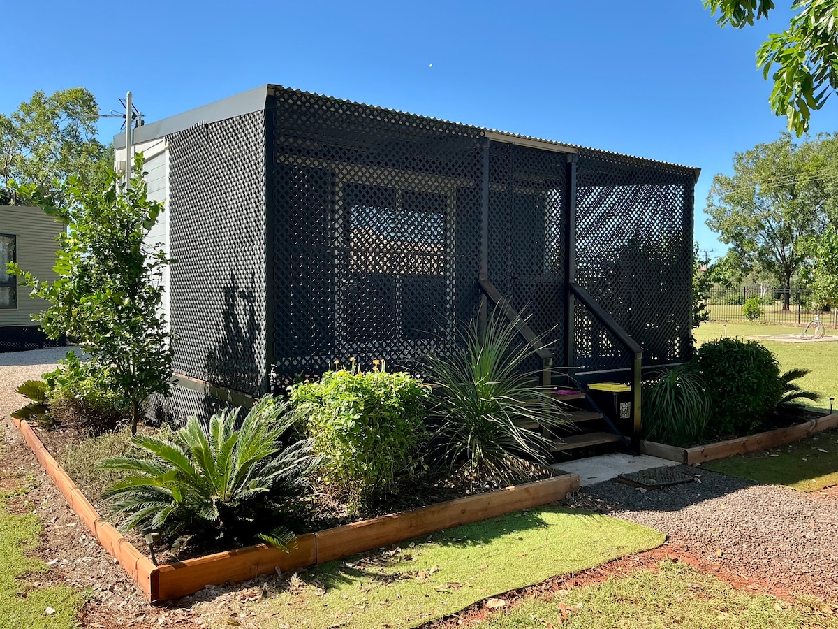 Our brand new Deluxe villa has a large queen size bedroom, separate bathroom and laundry and huge lounge area. Enjoy nights on the balcony with your own BBQ. Modern well appointed kitchen and dining with everything you need to feel at home. Large undercover parking area. Enjoy the gorgeous walk to the Katherine river just across the road! Plenty of nature to explore at the famous Nitmiluk National Park just a short drive away. Come stay with us in our quiet and relaxing park just out of town.