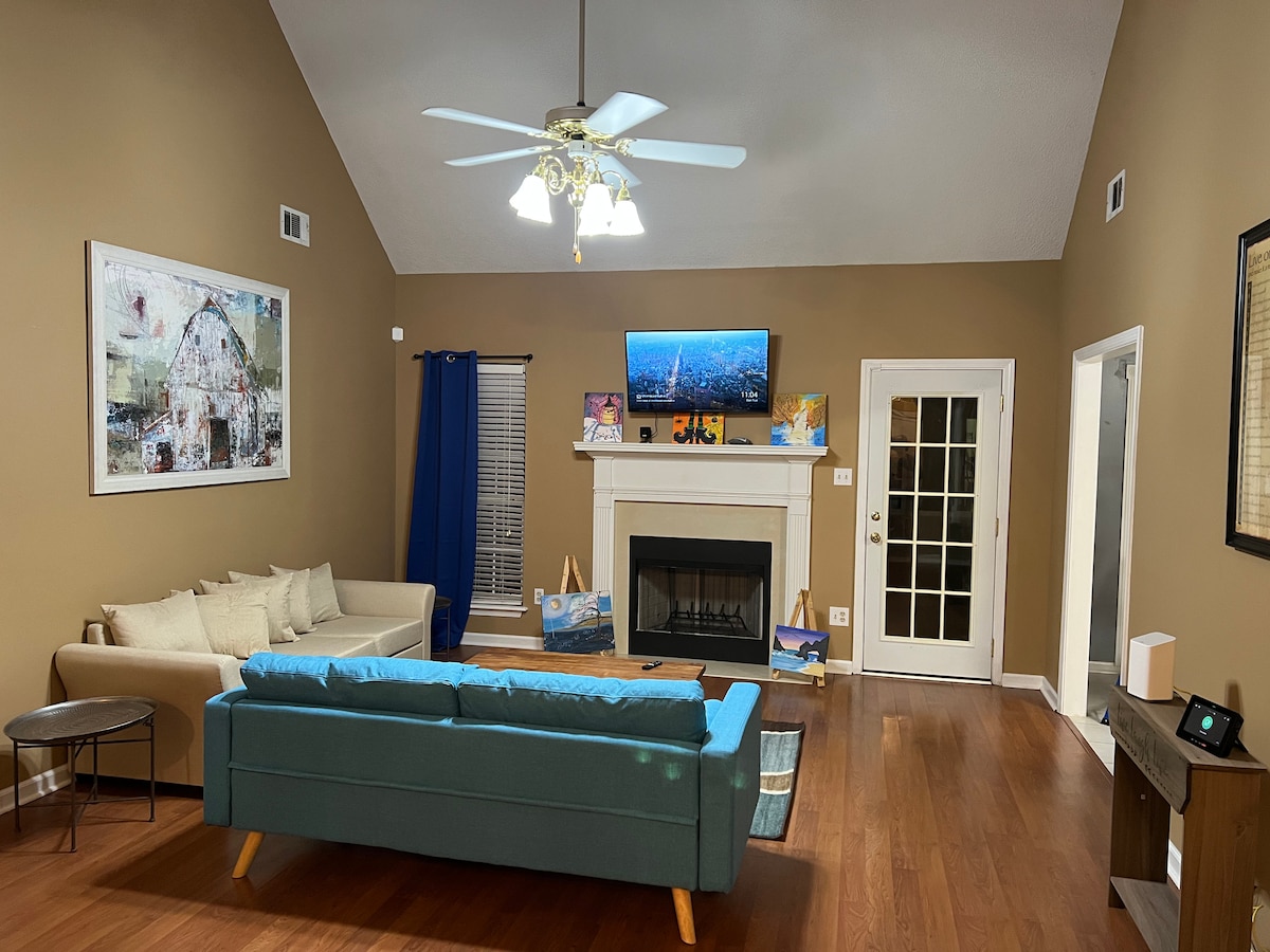 Cozy 3BR/2BA home in a quiet, safe area near Hwy 75 & 41, close to Warner Robins, Perry Fairgrounds, tech college & Fort Valley. Master w/king bed & private bath; 2 rooms w/queen beds. Smart TV (Netflix, Hulu, Disney+). Full kitchen, coffee area, workspace & fenced backyard w/wooded view, no rear neighbors. Playground 1-min walk! Outdoor cams: front, back, driveway. No indoor cams. Perry short rental Permit : STR INT-0149-2024.