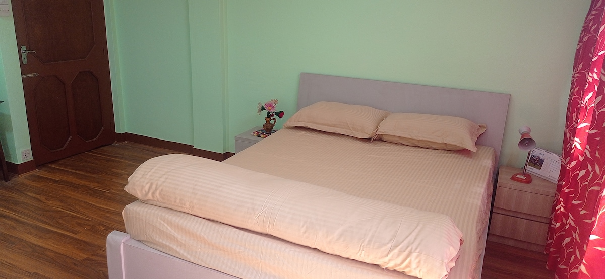 Very simple, yet cozy and charming, bright, well decorated and furnished room with balcony. Ananda Tree House, eco Homestay is located in the Northeast part of Kathmandu city, Boudha. It's also close to art, culture, views, family-friendly activities, mountain countryside. The International Airport is 5.1 km and takes 20 mins by car or taxi. 7 minutes walk to Boudhanath Stupa. Check my profile for more room listing!