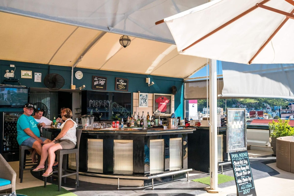 ✨ Only 800m to Patong beach - where lively restaurants, shows, shopping mall, bars and thrilling nightlife await ✨ Enjoy a pool-view balcony in this freshly furnished two-bedroom apartment—the only one with a sofa bed, easily sleeping up to five ✨ Price Includes ALL utilities: ✔ NO hidden costs – Electricity, Water, WiFi, 100% covered ✔ Free airport pick-up one time: For minimum 3 nights booking ✔ Free access to two Swimming Pools (groundfloor & rooftop infinity pool), a Fitness Gym, and Parking