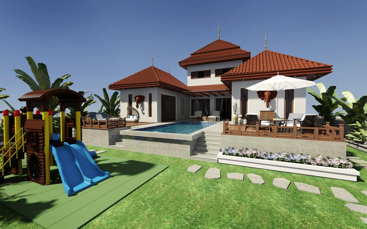 Nestled between mountains and sea in Phuket, this villa mixes Thai style and modern comfort for families and groups. 4 bedrooms, 4 bathrooms, 2 jacuzzis, sleeps up to 10. Private pool for day swims and quiet nights. Kids’ playground with slides and swings. 35 sqm living room, open kitchen and villa-view terrace for gatherings and BBQ. Quiet, close to beaches( 800m away), markets and attractions. Your home away from home in Phuket for family holidays and group retreats.