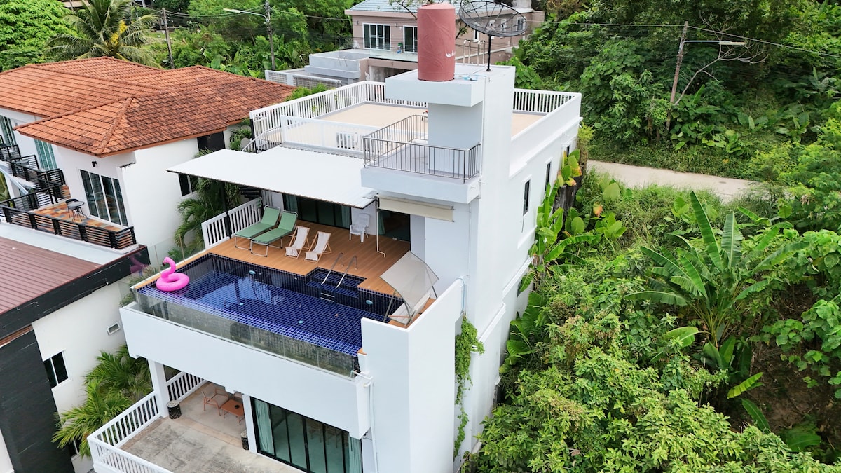 1.别墅 位置优越: 这是在芭东为数不多的独栋别墅。开车去芭东海滩、孟加拉酒吧街,卡伦等中心地带仅需5-10分钟车程,交通便利,晚上没有宵禁限制,适合探索芭东的繁华与活力。同时又远离喧嚣,当您领略了芭东的夜生活后,又可以独享私密安静的个人时光。 2. 全新装修,现代奢华: 别墅于2024年建设并装修,有三间奢华简约的卧室,可容纳6位客人。每间卧室都配备了落地窗、室外阳台和干湿分离的卫生间,确保每位客人的隐私与舒适。 3. 空间设计: 一层:宽敞的室外休闲区和车库。周围环绕热带植物,适合放松身心,感受自然。 二层:温馨的卧室、设备齐全的厨房,以及玻璃屋客厅 。从客厅可以直接步入泳池。客厅四周落地玻璃环绕,可欣赏芭东海湾的壮丽景色和热带雨林风光。 三层:两间独立卧室和卫生间,配备两个舒适大床和纯棉床品,确保客人拥有深度睡眠。 4. 私人泳池: 别墅配备私人泳池。 5· 宁静与繁华的完美结合: 这座独栋别墅是一个理想的度假胜地,结合了现代奢华与自然美景,为客人提供舒适的入住体验。 愿您在这里度过一个轻松愉快的假期!