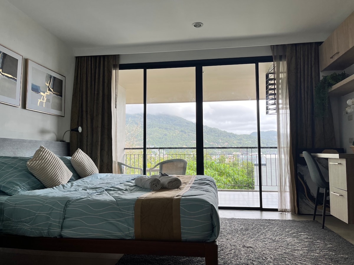 *SUPERHOST!*-Look at my reviews & photos to see the real value of this condo! No motorbike/Tuk-Tuk needed to get around Patong! HIGH FLOOR PANORAMIC SEA & MOUNTAIN & CITY VIEW, 40 sqm LUXURY condo in Downtown Patong! Very close to BANGLA Rd, PATONG BEACH, BANZAAN Market, CENTRAL and JUNGCEYLON Mall. Large pool, Private HS Wi-Fi, Comfortable bed! Motorbike rental, laundry, massage/spa, 100's of restaurants/bars directly outside condo. No electric or water fee. Easy for taxi to find my condo