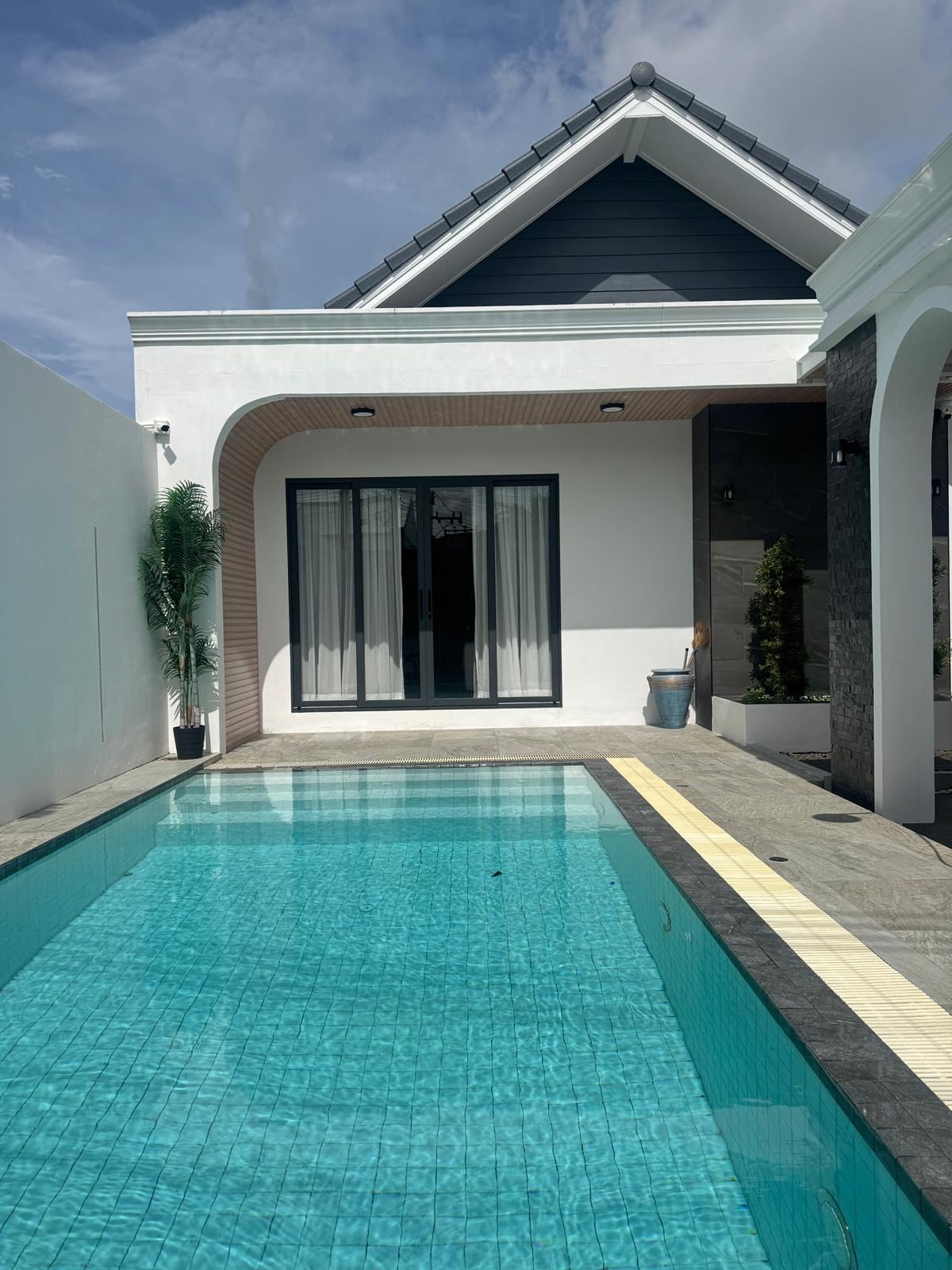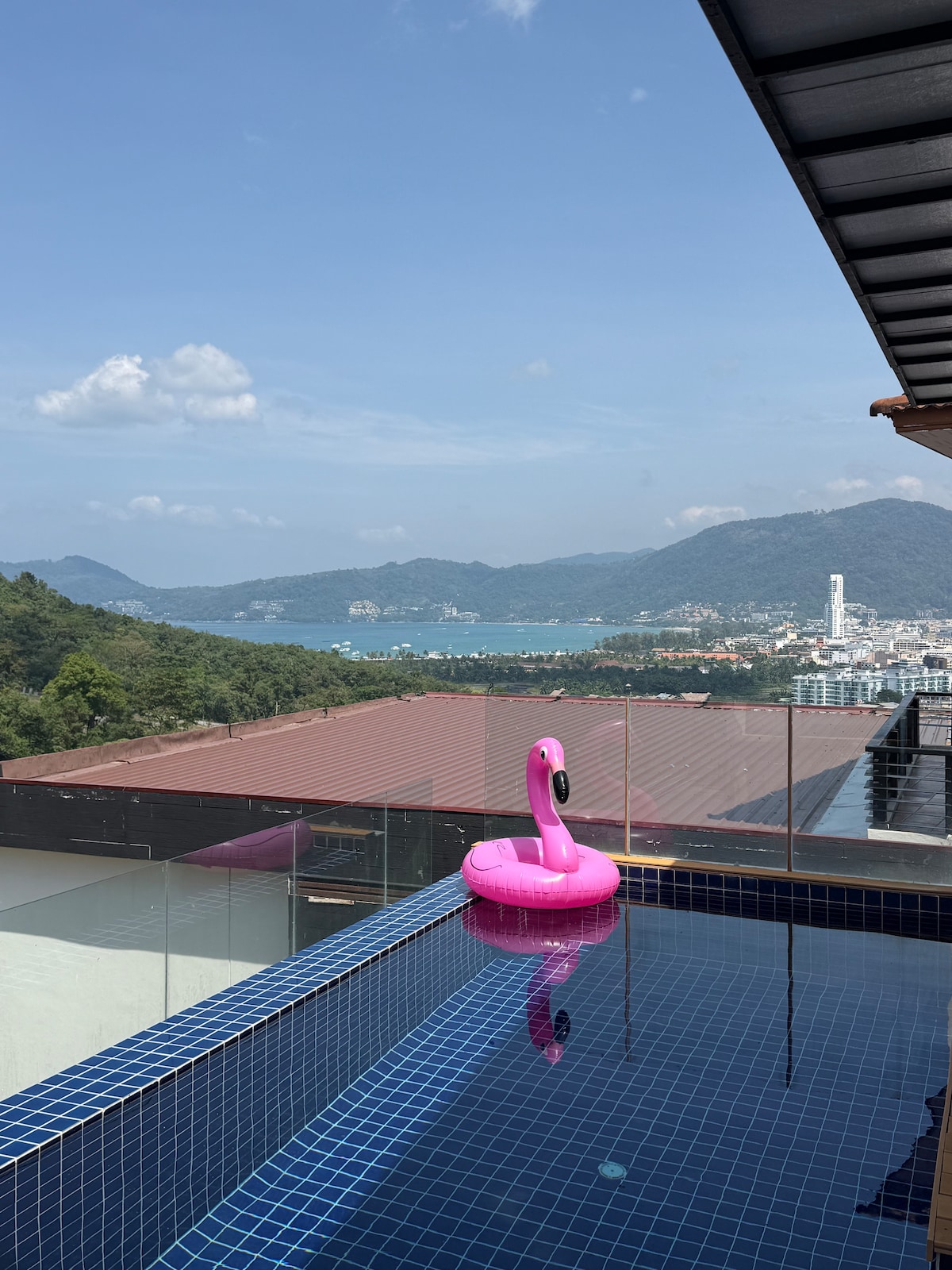 1.别墅 位置优越: 这是在芭东为数不多的独栋别墅。开车去芭东海滩、孟加拉酒吧街,卡伦等中心地带仅需5-10分钟车程,交通便利,晚上没有宵禁限制,适合探索芭东的繁华与活力。同时又远离喧嚣,当您领略了芭东的夜生活后,又可以独享私密安静的个人时光。 2. 全新装修,现代奢华: 别墅于2024年建设并装修,有三间奢华简约的卧室,可容纳6位客人。每间卧室都配备了落地窗、室外阳台和干湿分离的卫生间,确保每位客人的隐私与舒适。 3. 空间设计: 一层:宽敞的室外休闲区和车库。周围环绕热带植物,适合放松身心,感受自然。 二层:温馨的卧室、设备齐全的厨房,以及玻璃屋客厅 。从客厅可以直接步入泳池。客厅四周落地玻璃环绕,可欣赏芭东海湾的壮丽景色和热带雨林风光。 三层:两间独立卧室和卫生间,配备两个舒适大床和纯棉床品,确保客人拥有深度睡眠。 4. 私人泳池: 别墅配备私人泳池。 5· 宁静与繁华的完美结合: 这座独栋别墅是一个理想的度假胜地,结合了现代奢华与自然美景,为客人提供舒适的入住体验。 愿您在这里度过一个轻松愉快的假期!