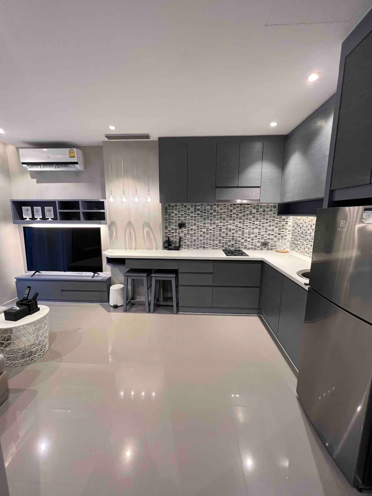豪华单间公寓、无边泳池、健身房,距离海滩100米