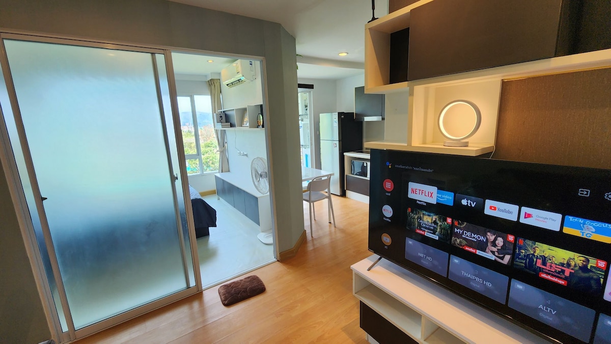 One bedroom apartment (kitchen-living room+bedroom) Close to the best beach in Kamala. The room is located on the grounds of a 5* hotel and allows our guests to enjoy all its facilities: - Large fitness center (Best in Kamala) - Two rooftop pools with sea, mountain and sunset views - One pool on the first floor with in-water bar - Bars and restaurants (one on the rooftop) - Coworking - Spa - Parking - Medical Center - Dedicated high-speed internet wifi in the room