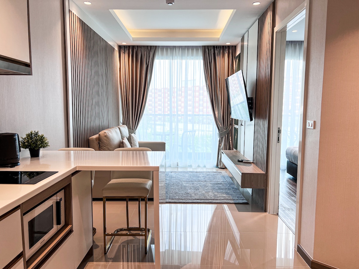 Read full description before booking, including "Show more". This penthouse's contemporary design and panoramic views will sweep you off your feet. Prepare dinner and hang out by the kitchen countertop, or watch Netflix with a view, this penthouse can make most activities memorable. Just 650m to the beach and located in project featuring a huge swimming pool, as well as a gym and sauna. The penthouse is well equipped with lots of amenities and close to restaurants, massage parlours, bars.