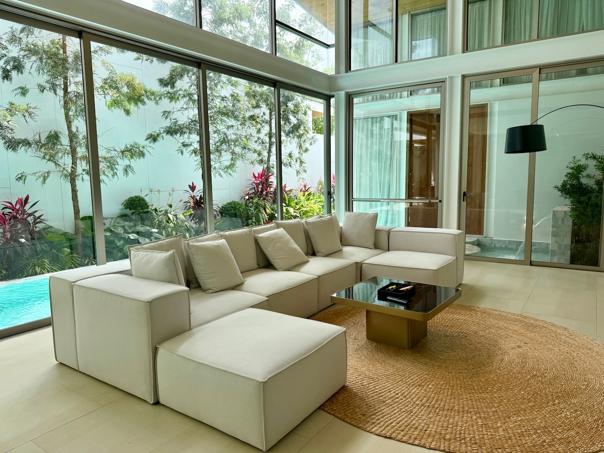 Villa Lumina is a modern 4-bedroom, 5-bath smart home villa designed for comfort and relaxation. With soaring 6m ceilings, bright open-plan living, and seamless indoor–outdoor flow, it’s ideal for families or groups. Enjoy a private 12m pool with two jacuzzis, lush garden views, and elegant bedrooms with en-suites. Daily housekeeping is included, and the villa is just 10 minutes from Bangtao and Layan Beaches, Boat Avenue dining, and Laguna Golf.