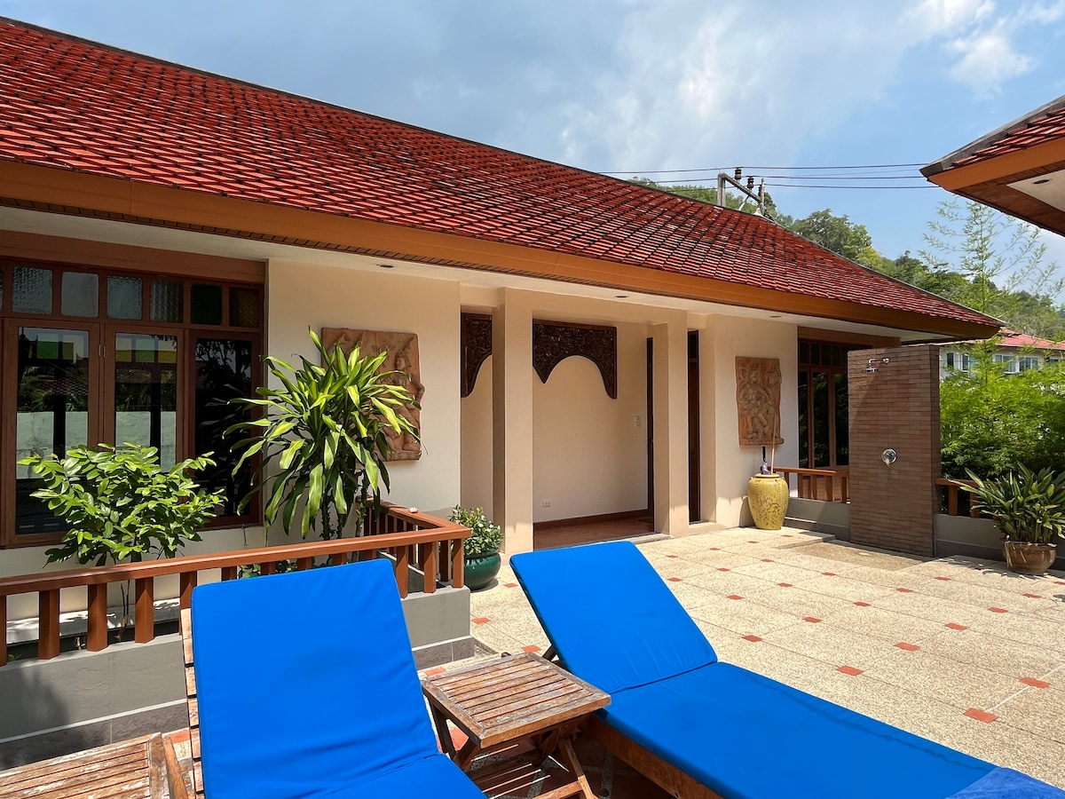 Unsere kleine ecofriendly Poolvilla befindet sich in einem ruhigen Tal, direkt am Phuket Country Club, einem der schönsten Golfplätze Phukets. Die 2021 erbaute Villa verfügt über einen gepflegten Salzwasserpool, einen großen überdachten Außenbereich samt Barbeque und separater Sala, einem separatem Schlafzimmer mit angrenzendem Badezimmer und überdachter Außendusche, einer kleinen Küche sowie über ein großes Bamboosofa welches zum relaxen einlädt... Die Villa ist ideal für Singles oder Paare.