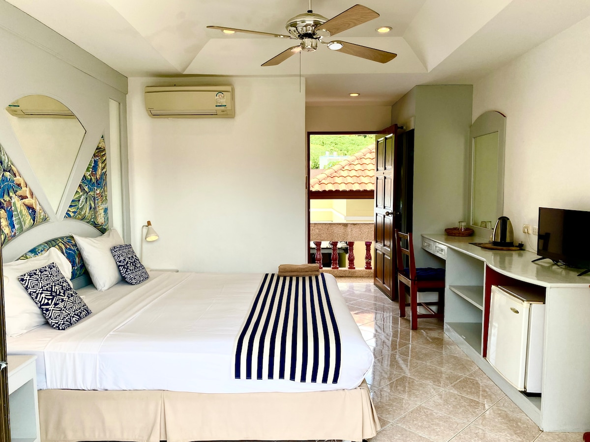Offer daily cleaning and breakfast buffet. Fulfill your holiday desires at the Charm Resort Phuket, just steps away from Patong beach. Relax in Deluxe room with highly comfortable furnishing. Plenty of space to lie back on the daybed, use a computer and free Wi-fi internet at the work desk. King size bed has a super high quality mattress, the mood lighting can create the ambiance for reading or relaxing with a movie. The balcony is a great spot to enjoy the pleasant breeze and tropical views.