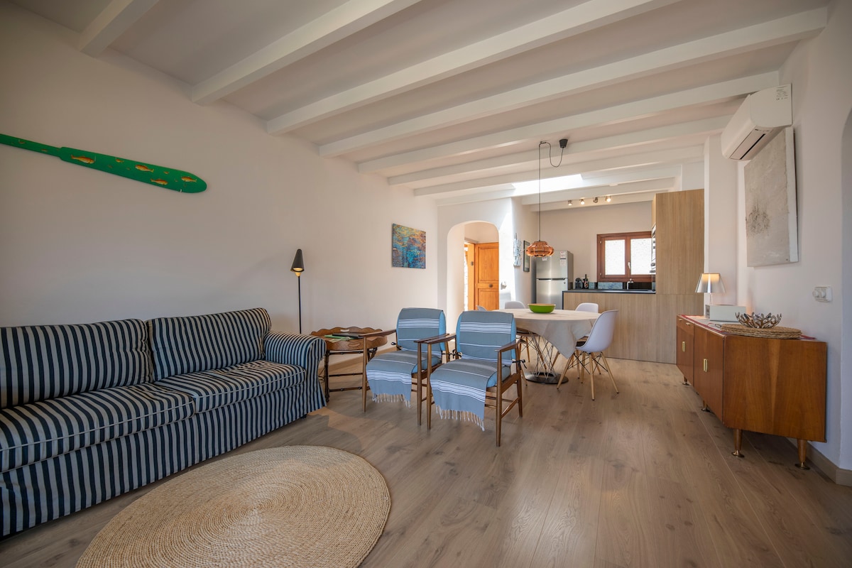 This beautiful property is located next to the picturesque village of Campanet, You can reach the city in a pleasant 15 min walk. Not far away is a sports centre and tennis court. This is a comfortable country house for 4 people, it has been completely restored recently, combines contemporary design with comfortable and elegant furniture with traditional looks.