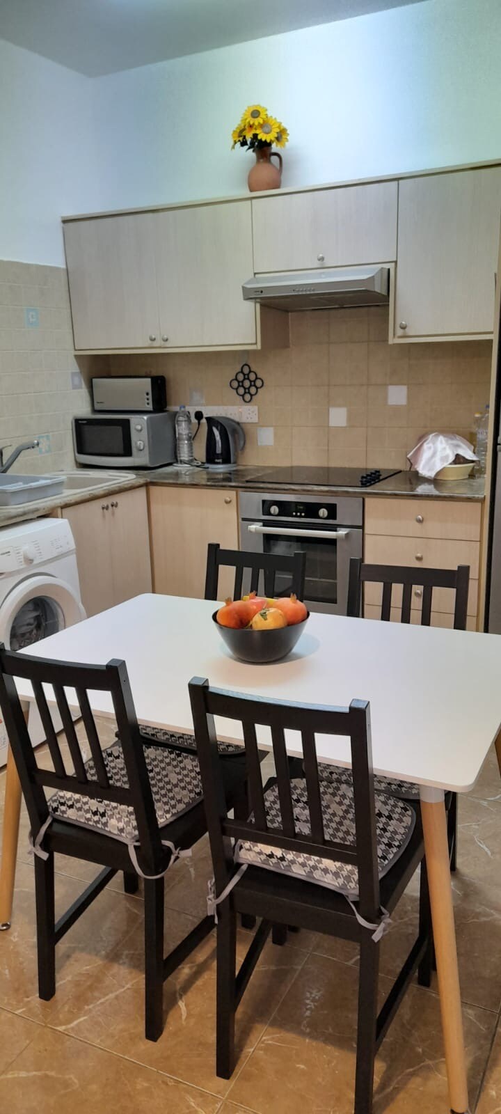 Cozy Christmas & New Year decor for a warm December stay. 🛏 Sleeps 3–4: one king-size bed (2 singles together) + one smaller double bed 🔥 AC heating in both bedrooms 🎬 Netflix, games & Wi-Fi 🚗 Easy self check-in & parking Now with a desk in one bedroom, perfect for light work or remote working. Ideal for couples, small families & remote workers. Best suited for 3 adults or 2 adults + 2 children, as the second bed is a smaller double. 3rd floor flat in an authentic Cypriot building.