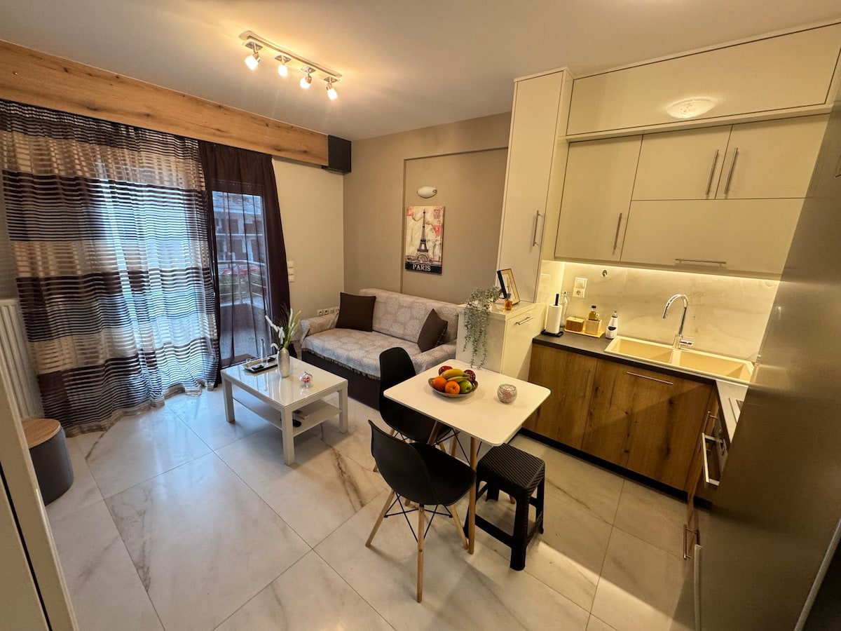 Ένας σύγχρονος και καλαίσθητος χώρος σας υποδέχεται φιλόξενα καλύπτοντας κάθε ανάγκη σας. Διαθέτει άνετο υπνοδωμάτιο με ευρύχωρη ντουλάπα και έξυπνη τηλεόραση, πλήρως εξοπλισμένη κουζίνα, ιδιωτικό μπάνιο, κλιματισμό, δωρεάν wifi. Βρίσκεται σε απόσταση μόλις 5 λεπτά με τα ποδιά από την κεντρική πλατεία της πόλης. Απέναντι υπάρχει σούπερ μάκρετ, φαρμακείο, φούρνος και άλλα καταστήματα. Είμαστε στη διάθεσή σας για όποια πληροφορία χρειαστείτε σχετικά με την περιοχή.