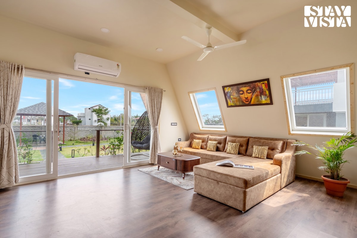 Private farmhouse inside Neel Farms, just 53 km from Nagpur. Enjoy a private pool, garden seating, terrace room with glass view. Surrounded by nature with access to a lake, boating, temple, kids’ play area, Indoor games and hotel facility — perfect for families, couples, or weekend getaways with friends.