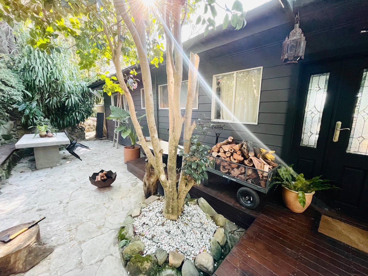 The Greater Blue Mountains World Heritage Area is renowned as a healing place. Experience one of the most soul nourishing properties, in our unique and tranquil eco studio a stone’s throw from many of the best places. Stylishly appointed with luxury king bedding, large rain shower, outdoor bath, fire pit and modern comforts, Little Werona* is on our half acre property of edible and ornamental gardens with fresh eggs from our chickens (when available). Pets may be allowed by prior agreement.