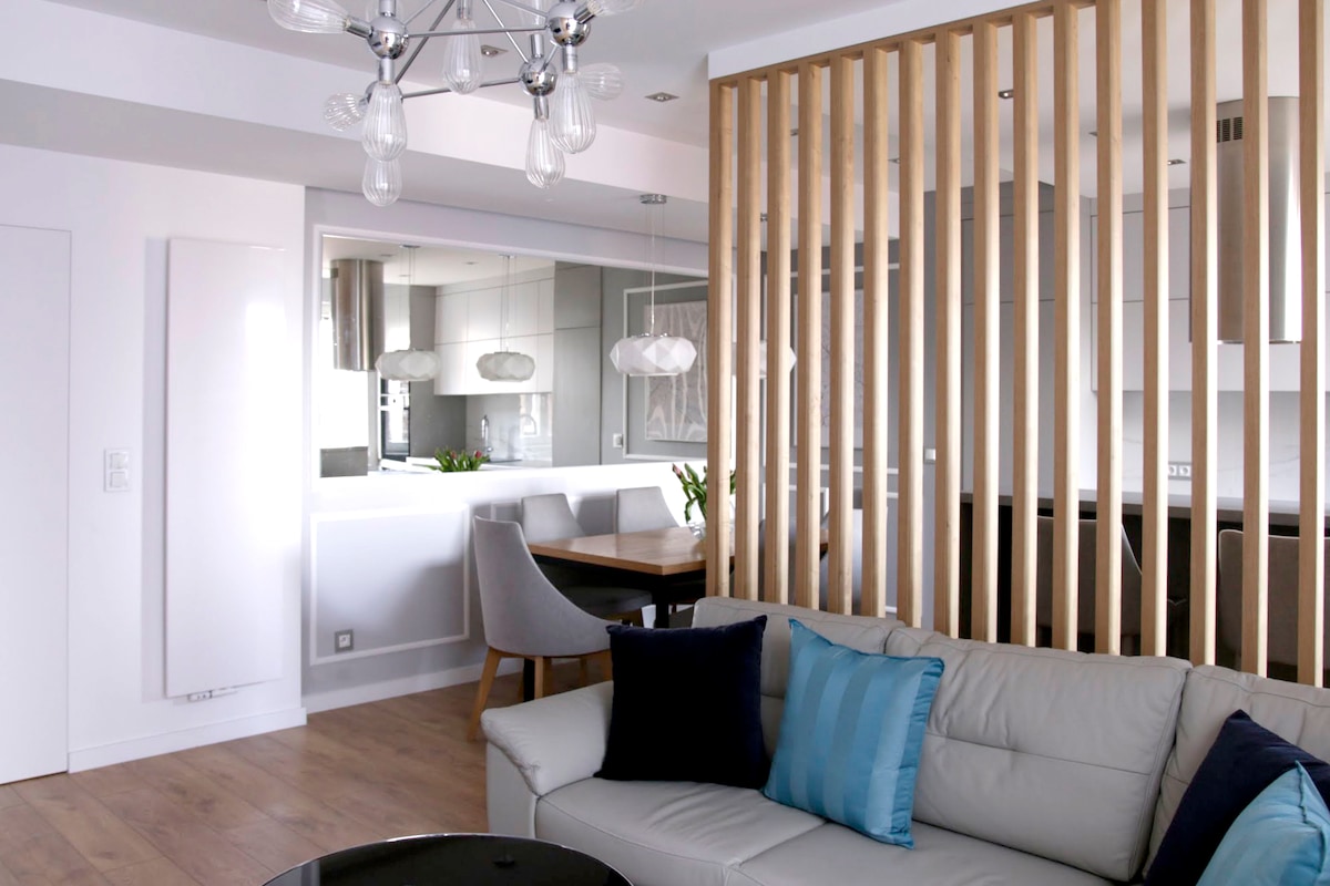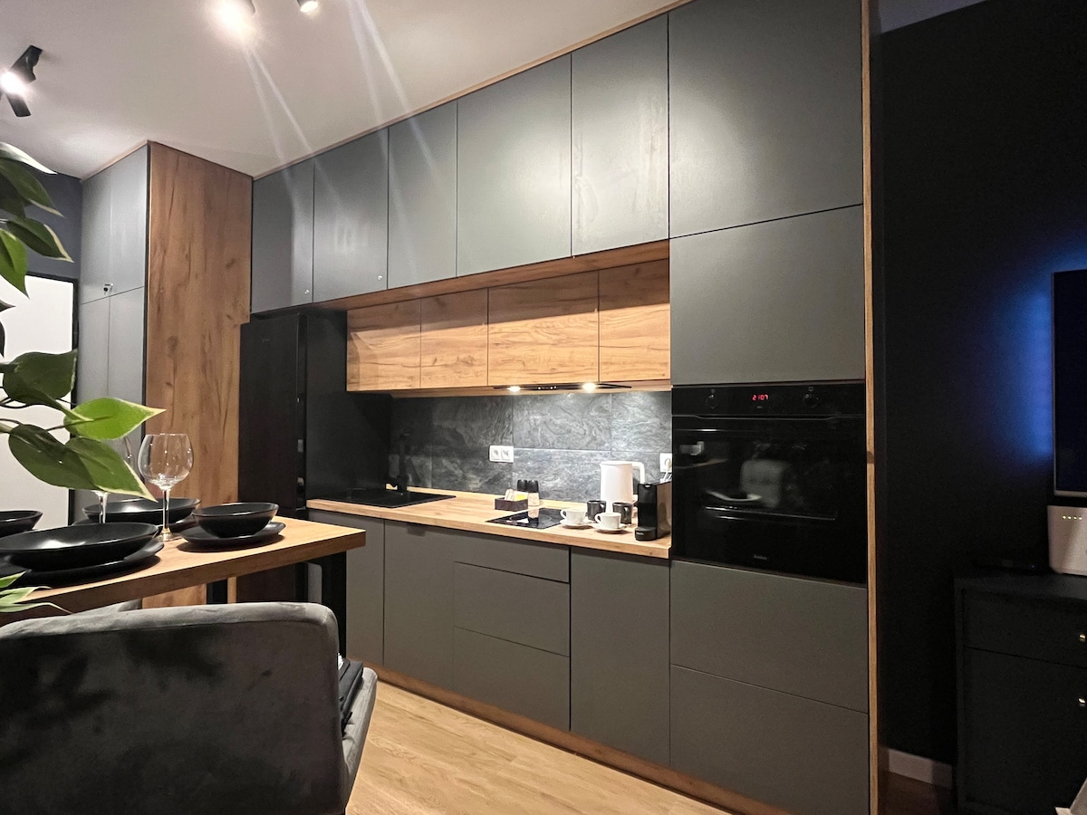 Super chic and centrally located apartment just steps from tram and bus stops, with easy access to Katowice Train Station and the airport—perfect for travel across Poland and Europe. Modern, stylish, and comfortable, ideal for business or leisure stays. Close to Spodek Arena, International Congress Centre, NOSPR, Culture Zone, and Mariacka Street cafés and nightlife. Enjoy FREE cable TV, CNN, BBC, and Netflix for relaxing nights in.