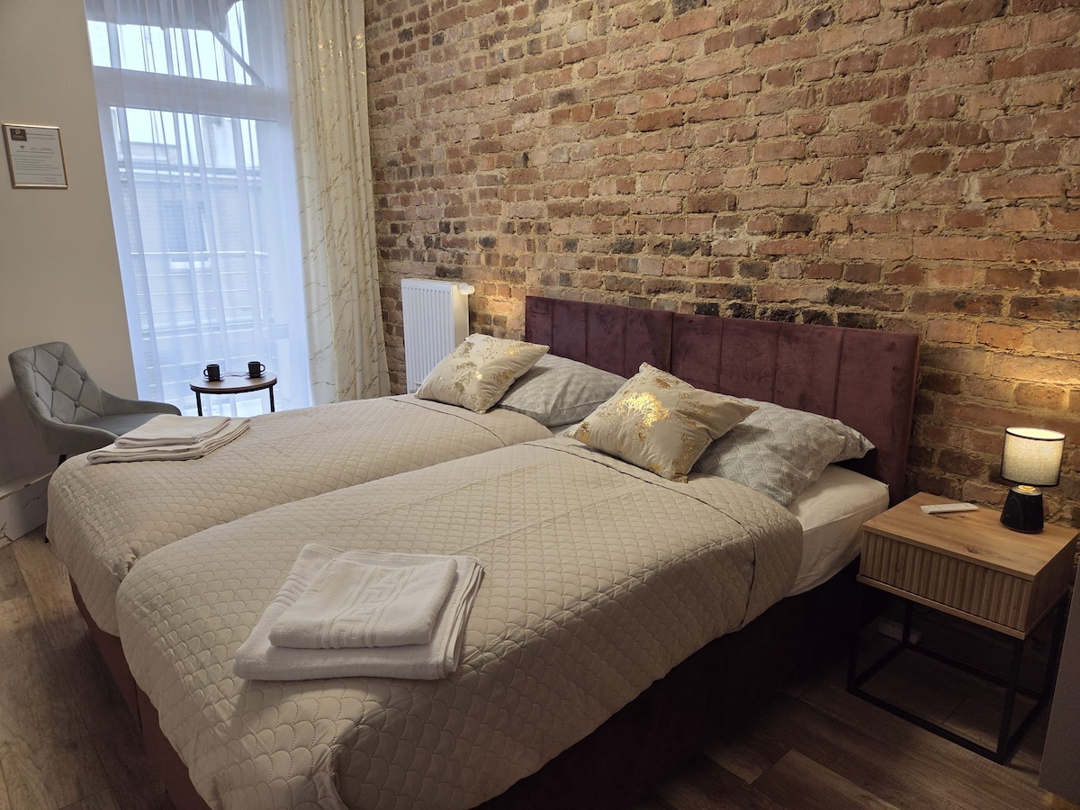 Luksusowy apartament w nowoczesnym budynku z balkonem i windą. Położony w samym sercu Katowic. Bistro " Happiness Exists" w budynku (otwarte 8-19). Serwuje śniadania, obiady i kolacje. Wybór z menu. Cena około 49 PLN. Dla Gości dostępny ogród na dachu z widokiem na panoramę Katowic. Przeznaczony maksymalnie dla 4 osób. Sypialnia w formie aneksu bez drzwi. Rozmiar łóżka: 160x200 cm Kanapa rozkładana: 140x200 cm Idealny na krótkie jak i długie pobyty.