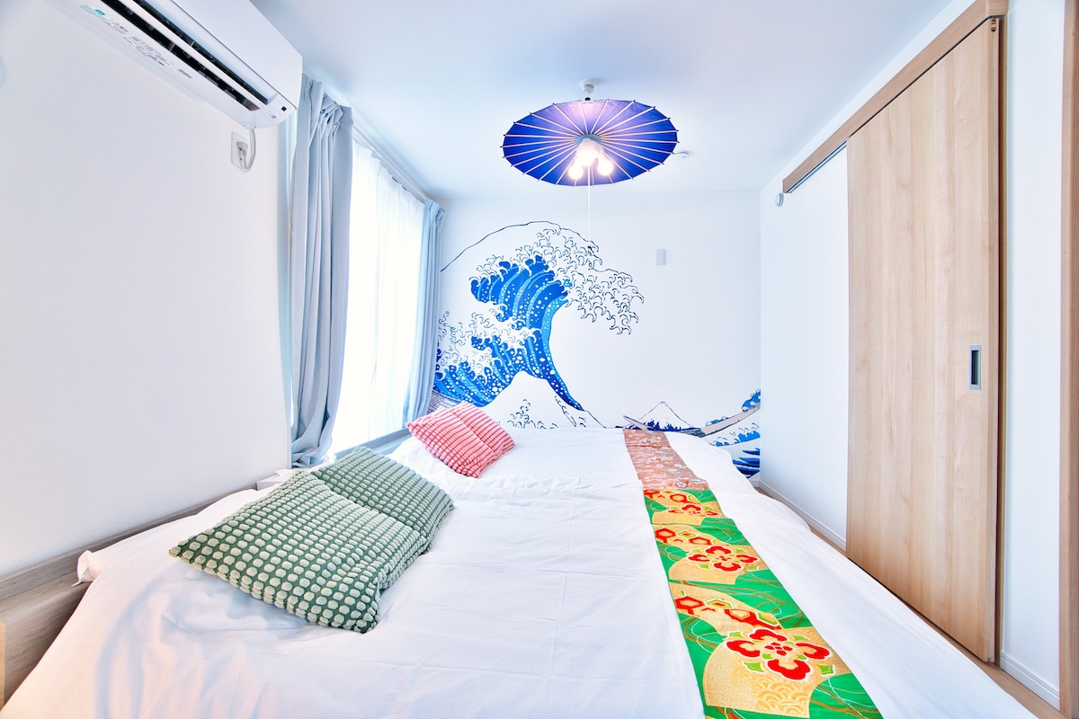 欢迎来到樱花屋(Sakura House),这是一个全新、整洁的私人出租屋! 我们将与您的房东朋友一起,为您的客人提供一个愉快的旅程! 到旅游景点的距离:从旅馆步行 2 分钟的巴士站有直达迪斯尼乐园的巴士服务,到迪斯尼乐园和迪斯尼海洋的车程为 51 分钟! 非常受欢迎! 从另一个巴士站步行 3 分钟,可直达浅草上门和东京天空树,车程 24 分钟。 从最近的车站到新宿和涩谷需要 45 分钟。 交通:从旅馆步行 2 分钟即可在巴士站乘坐东京地铁到龟梨站。 如果乘坐反方向的火车,则可到达 JR 新幸岩站。 最近的车站是青户站,从羽田机场乘坐京滨机场线(Keikyu Airport Line)需要 38 分钟,从成田机场乘坐京成线(Keisei Line)需要 46 分钟。 从青藤站步行 15 分钟或乘坐出租车 5 分钟即可到达旅馆。 步行一分钟即可到达投币式停车场(1,400 日元/24 小时)。 居住环境:位于安全的住宅区内,环境安静。 每个房间都配有高速 WIFI 和空调,让您住得舒适。 楼龄仅两年,干净整洁,焕然一新。7 人可在客厅和卧室欣赏葛饰北斋的艺术作品!
