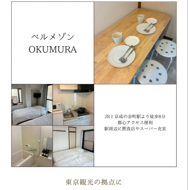 2025年4月开业! 从京成线「お花茶屋站」出发,只需悠闲地漫步穿过商店街,3分钟便可抵达我的民宿。这里是一间新建公寓内的独立房源,完美融入传统日本商店街的氛围,带给您特别的入住体验。 清晨,您可以在商店街的面包店品尝刚出炉的面包,喝上一杯现磨咖啡;夜晚,不妨体验一下老字号寿司店或荞麦面馆的正宗美味。这样的住宿,让您深度感受当地的生活气息,与旅游截然不同,尽情享受纯正的社区时光。 🚅 交通时间如下: 羽田、成田机场:60分钟 上野:18分钟 浅草:16分钟 晴空塔:17分钟 银座:35分钟 池袋:35分钟 新宿:44分钟 👥 若您与家人或朋友一同入住,可预订隔壁的另一间房,两间合住最多可达4人,详情欢迎咨询。 🏠 便利设施:步行 3 分钟内即可到达便利店、餐馆、超市、投币洗衣店、公园。而且,这里夜间环境宁静,非常适合休闲放松。 📺为了营造一个轻松休憩的环境,房内不配备电视。 📝 若您计划入住 30 天以上,请注意需签订定期借家合同。预订成功即视为合同签订完成。如需详细信息,欢迎随时咨询。 🏢 此间房源位于一栋无电梯的三楼,请确保您的入住便利性。