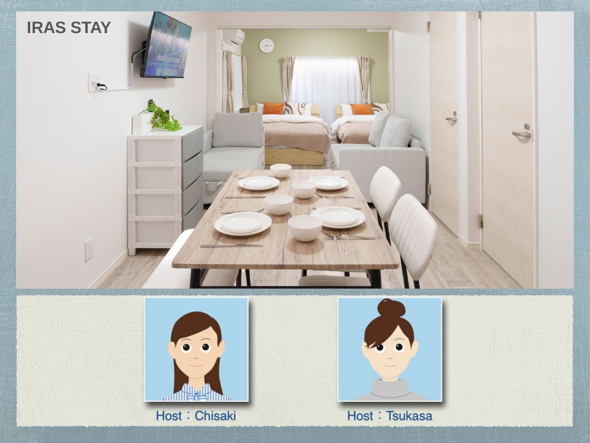 京成押上線「京成立石駅」から徒歩7分、静かな住宅街に位置する築浅の一戸建てです。快適な空間で、ゆったりとお過ごしいただけます。周辺にはコンビニや飲食店も多く、便利です。 CHECK IN:16:00/CHECK OUT:11:00 チェックイン前・チェックアウト後のお荷物預かりもお気軽にご相談ください。 ダブル布団1組+シングル布団4組をご用意しており、ご家族やグループでの滞在に最適です。館内は禁煙です。 シャンプー、コンディショナー、ボディソープ、歯ブラシ、スリッパ等を完備。タオルはお一人様につきフェイス・バスタオル各1枚をご用意。洗濯乾燥機・洗剤・柔軟剤も無料でご利用いただけます。 ウォシュレット付きトイレ2台。食洗機、電子レンジ、ケトル、ドライヤー、ヘアアイロンなど設備も充実しています。 敷地内に軽自動車1台分の無料駐車場あり(サイズ制限:長さ3.4m × 幅1.5m × 高さ2m以内)。サイズ超過の場合は、近隣のコインパーキング(徒歩1分)をご利用ください。 屋外にカメラを2台設置しております。防犯、駐車サイズ確認および法令に基づく本人確認のために使用しております。