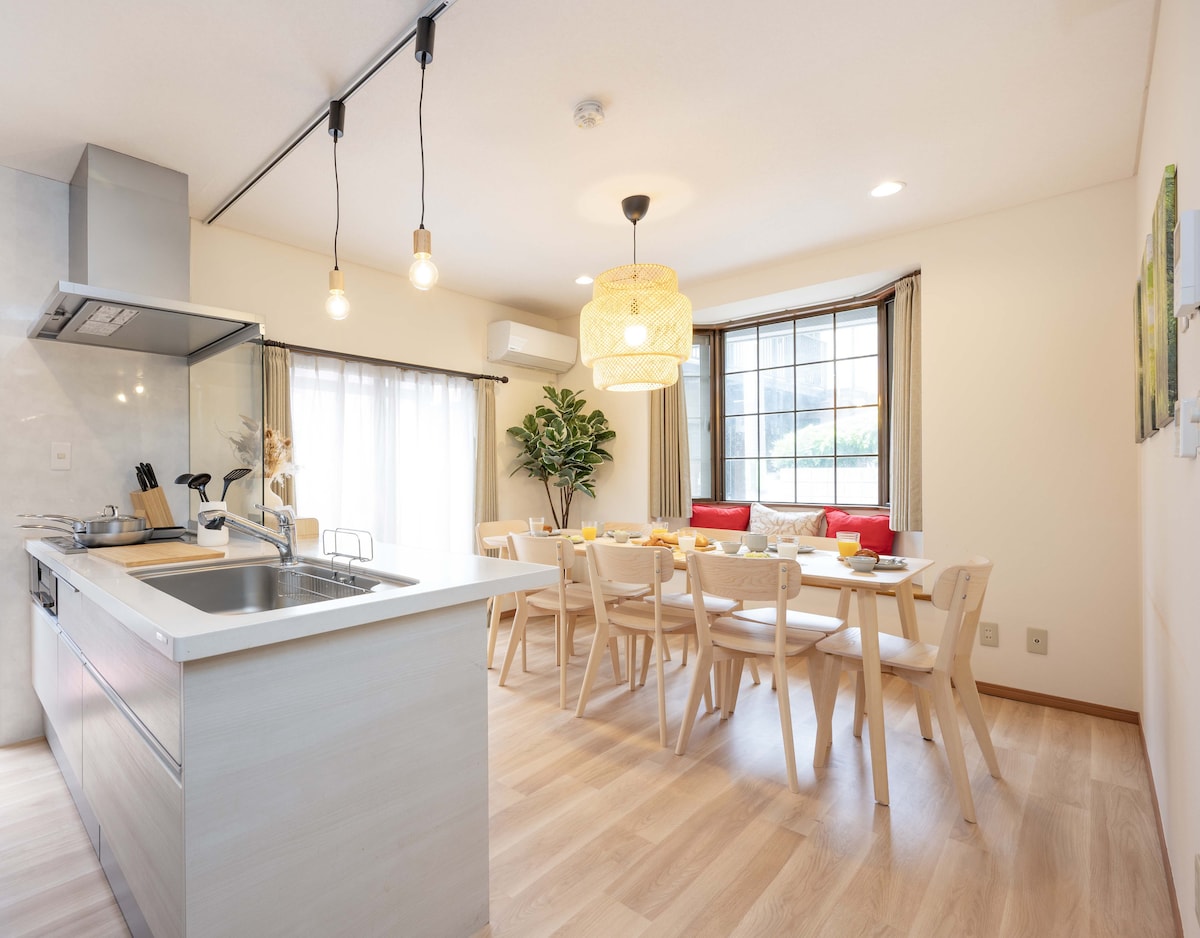 这家Airbnb位于东京葛饰区,将传统和风美学与现代舒适感完美融合。 温暖的木质色调室内装饰,加上浮世绘风格的特色墙面,让您在悠闲放松的同时感受日本文化。 地理位置优越,距离最近的四木站步行仅13分钟。乘坐电车约10分钟即可到达浅草,东京晴空塔区域也轻松可达。此外,步行2分钟即可到达超市,步行5分钟即可到达7-Eleven便利店,让您不仅能享受观光,也能像当地人一样体验东京的生活。 这间宽敞的住宿设施齐全,非常适合家庭旅行或团体入住。宽敞的客厅和餐饮区让您可以舒适地用餐和聊天。 距离四木站步行13分钟 最多可容纳4位客人 配备2张小型双人床 提供免费Wi-Fi 配有洗衣机和厨房,适合长住 在东京下町的怀旧氛围中,享受一场特别的舒适住宿体验。