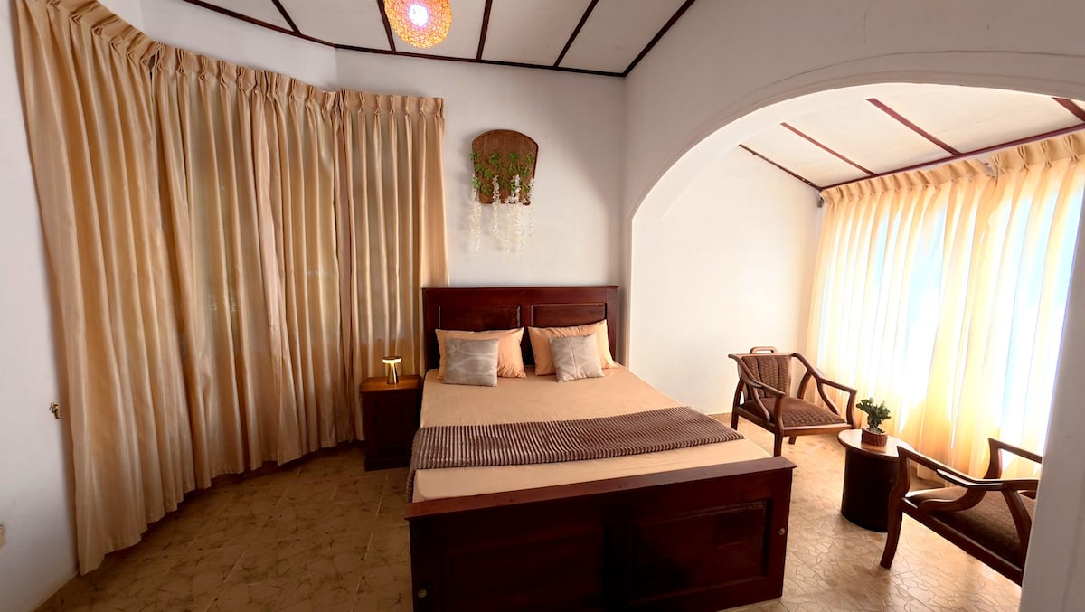 Keep it simple at this peaceful and centrally-located guesthouse . We are a ten minute walk to downtown Kandy, and five minutes from Udawatta Kele Sanctuary jungle. With three bedrooms, and two bathrooms, this home sleeps four people comfortably. From the living room you can enjoy beautiful, panoramic views of famous Big Buddha and Hanthana Mountain. Delicious breakfast can be made to order for an additional fee. We offer train station pickup 500,000LKR. Please inquire with any questions.