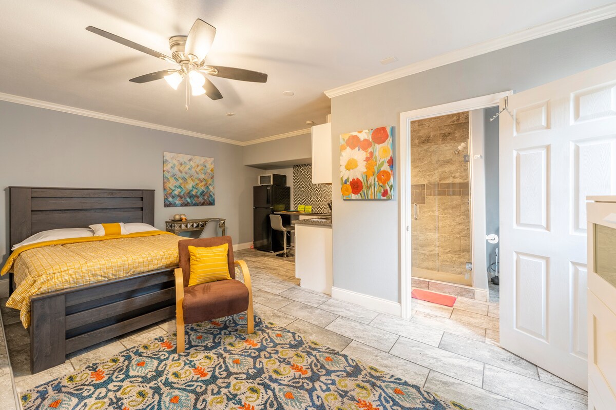 NON SMOKING spacious & serene attached one bedroom guest casita in the Katy suburbs. Great access to I-10, Texas Heritage Parkway, and Westpark Tollway/1093, easily commute to Katy/Fulshear/Brookshire, Sugar Land or Houston. Access to Texas Medical Center, and very close to the Energy Corridor and Katy Medical Center. King bed is super comfy so you can get the rest you need. Kitchen is stocked with a few breakfast items, snack basket, and small appliances to assist with preparing meal.