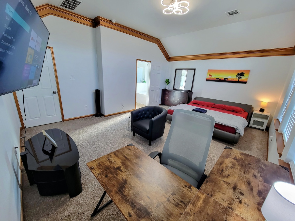 NON SMOKING spacious & serene attached one bedroom guest casita in the Katy suburbs. Great access to I-10, Texas Heritage Parkway, and Westpark Tollway/1093, easily commute to Katy/Fulshear/Brookshire, Sugar Land or Houston. Access to Texas Medical Center, and very close to the Energy Corridor and Katy Medical Center. King bed is super comfy so you can get the rest you need. Kitchen is stocked with a few breakfast items, snack basket, and small appliances to assist with preparing meal.
