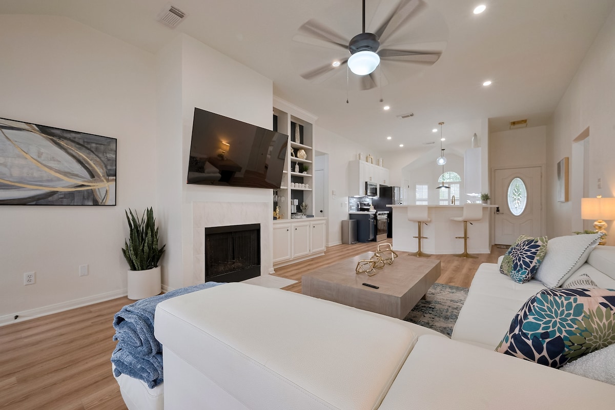 New to town? Visiting family or friends? Do you want a home away from home for you and your family so that you can relax in style? You've found it! This stunning home was renovated and staged by an award-winning designer to make your family's stay as comfortable and enjoyable as possible. The master bedroom has an inclining King bed. You can use the bonus room as an office, reading room, game room, or extra bedroom with its sleeper sofa. Shopping and restaurants are close by. Reserve Now!