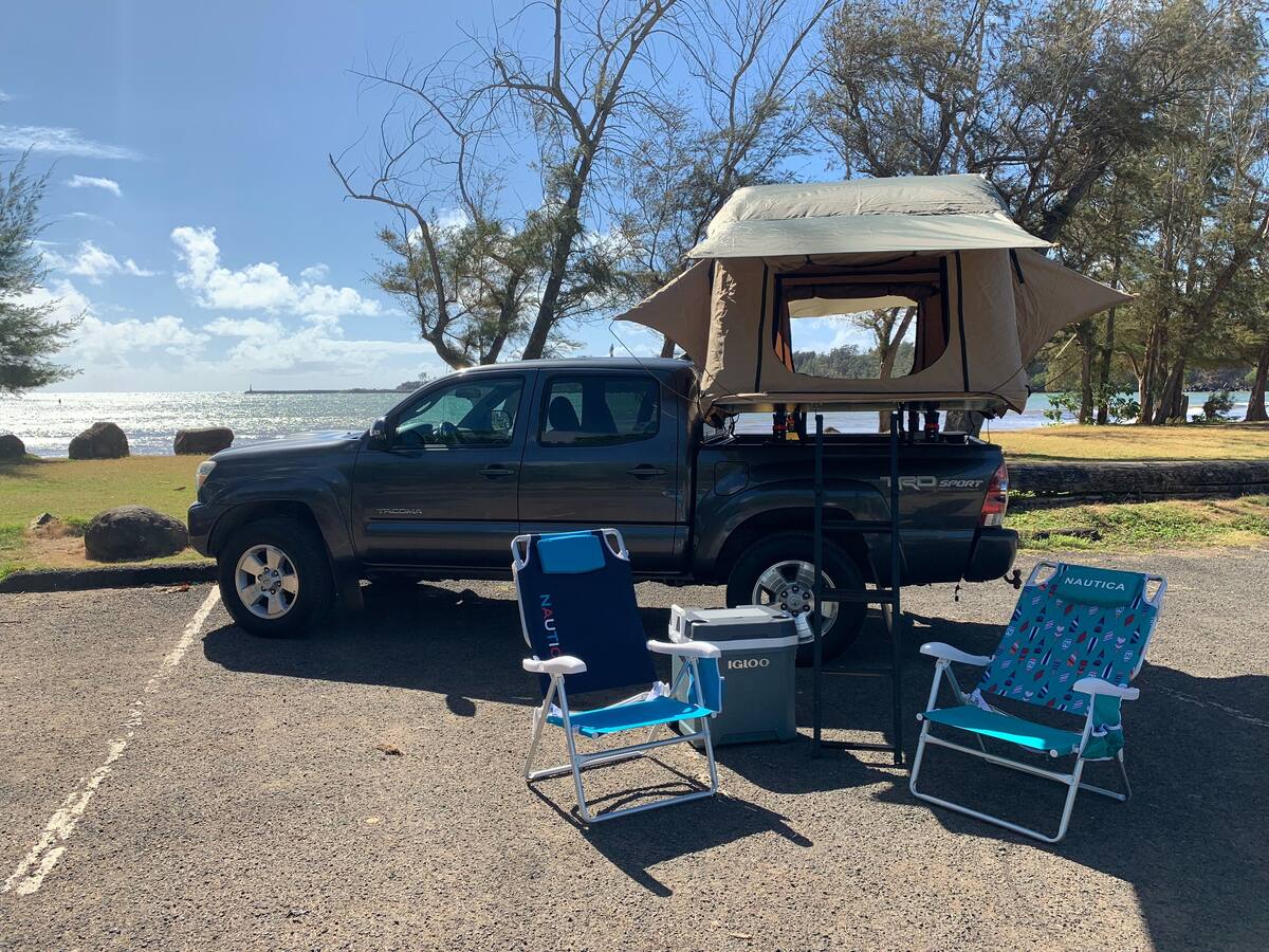 Kauai in comfort with your fully stocked island camper—complete with rooftop tent, kitchen setup, and all the essentials for off-grid adventure. Sleep under the stars, chase waterfalls, surf world-famous beaches, and discover hidden hikes across the island. Includes a local guide to Kauai’s best legal campsites. Camp permits required and booked by guest. The perfect way to reconnect with nature and experience true island freedom.