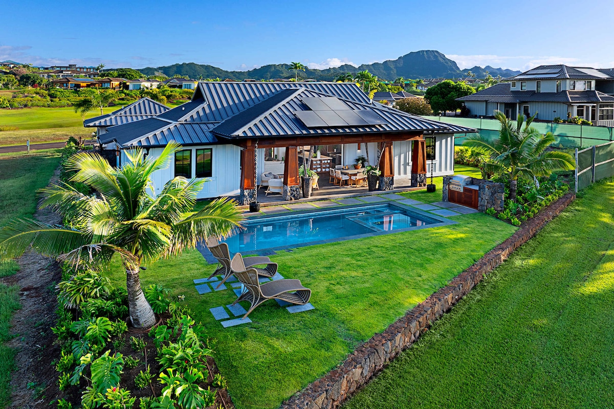 Discover Lanikai Hale, a luxurious, family-friendly retreat on the south short of Kauai. This peaceful villa includes access to a detached ohana (guest house) and comfortably accommodates up to 10 guests. Enjoy a private pool, hot tub, fire pit, outdoor kitchen and ocean views. Indoors, find a chef-ready kitchen, airy living spaces, and spa-like bathrooms. Close to pristine beaches, hiking, and dining, this home offers a perfect blend of comfort, elegance, and island adventure for your family.