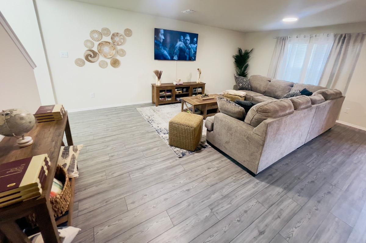 MTR and INSRUANCE STAYS WELCOME!! Contact for details. Bring the whole family to enjoy this clean and spacious, 3 bedroom home in a beautiful lakeside community. You will discover about 2,000 sq ft square feet of warm and inviting space, perfect for relaxation and making memories. The private backyard pool with outdoor deck is everything on a warm Texas day. When indoors, enjoy WiFi, large-screen smart TV’s, games, or a great book from the house library. No parties or loud noise please."