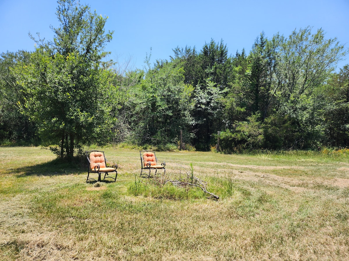 *45minutes from Dallas* Relax with the whole family at Dusty Feathers Ranch🪶 A peaceful ranch getaway! Enjoy long walks, a place to bbq, and the Texas sunset over the pond. Bring your 4wheeler! Pet friendly*** pet fee required*** The backyard is a shared space with the tiny home in the back of the property. Outdoor adventures are always nearby, whether it's fishing at Cedar Creek Lake, or birdwatching for the over 270 bird species that can be found at John Bunker Sands Wetland Center.