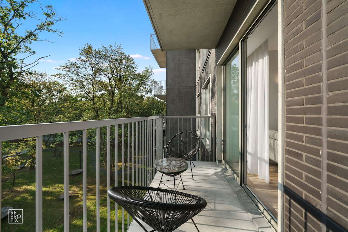 CENTRAL PARK APARTMENTS - brand new 2024 designer made apartments, located in heart of Kaunas city centre, while at the same time bounded by a beautiful Kaunas city central park with windows facing inner courtyard which ensures your calm sleep All restaurants, bars, clubs, shops and etc, right by the door Comfortable double bed with hotel grade mattress (+extra on top), a sofa-bed, fully furnished kitchen, air conditioning, washing machine with a drier, TV, NETFLIX EV charging statation - 50m