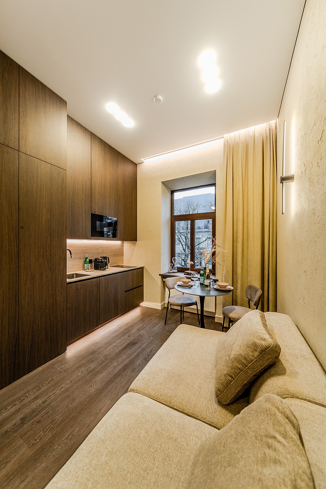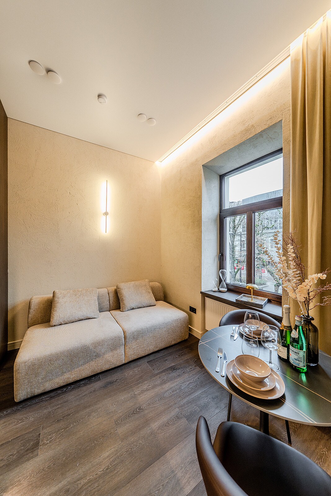 A perfect choice for those who appreciate Kaunas authenticity, this apartment is located in the historic Žaliakalnis district. Enjoy a peaceful atmosphere just 5 min walk from Ąžuolynas and the Zoo, and 15 min from city center. Designed with care for personal living, the space offers everything for a comfortable stay. Features include a breakfast bar and lounge on the balcony, premium mattress, two parking spots (one in an underground garage with EV charging)