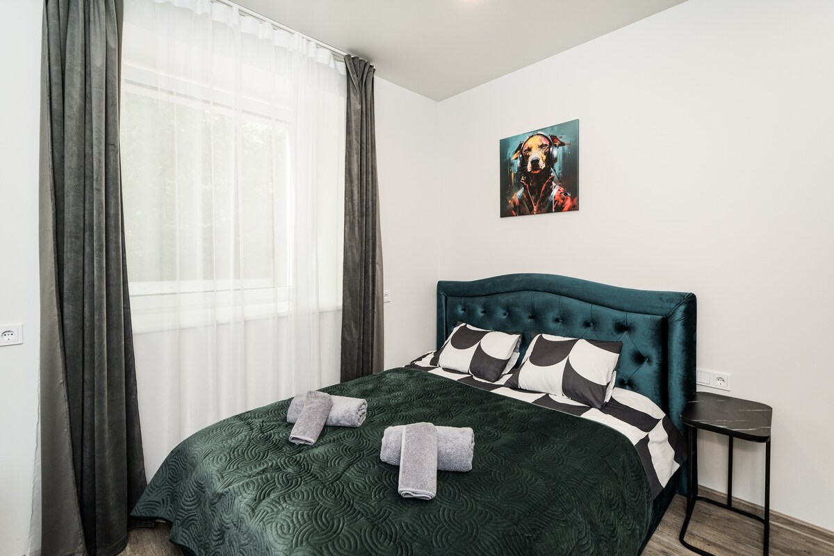 Fully furnished 1 bedroom apartment in Kaunas city center. Few minutes walk to shops, bars, restaurants, museums. 15 minute walk to bus and train stations, 10 minute walk to Azuolynas park. The appartment is 40m2 and can comfortably accomodate up to 4 people. It has one 1,6x2m bed in the bedroom and pull out sofa bed in the living area. The kitchen is fully equipped with everything needed to prepare your meals (fridge, dishwasher, stove, oven, kettle, microwave etc.). Smart TV and WI-FI.