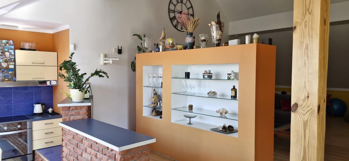 The room is located 5 to 10 min drive from the city center and offers homely, spacious and quiet accommodation including free Wi-Fi, sunny terrace, a fire-place, every basic equipment and nice panoramic scenery near-by. The place is perfect for larger groups of people during the summer time, either to spend quality time with family or have fun with friends. Also, we take care of free tea, coffee and nibbles. My son Jokubas currently takes care of apartment and will help you during your stay