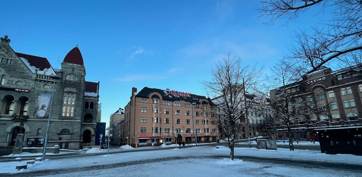 Experience Penthouse living in central Helsinki. Enjoy the glassed-in sun balcony – warm even in early Spring if sun shines (+a spot heater). Unwind in a Finnish sauna, then step out to the balcony with views for a classic hot–cold contrast – a Nordic wellness ritual that refreshes body and mind. ⛸ Winter: Free ice rink 50m away awaits – we got skates! ✔ Flexible check-in Gym 🛏 2 BR 🅿 Free Parking (EV) 📺 70" Disney+ ⌘12 min to center 👣 Walkable 🏪 Grocery 60m, 24/7 🍕 Good restaurants Park