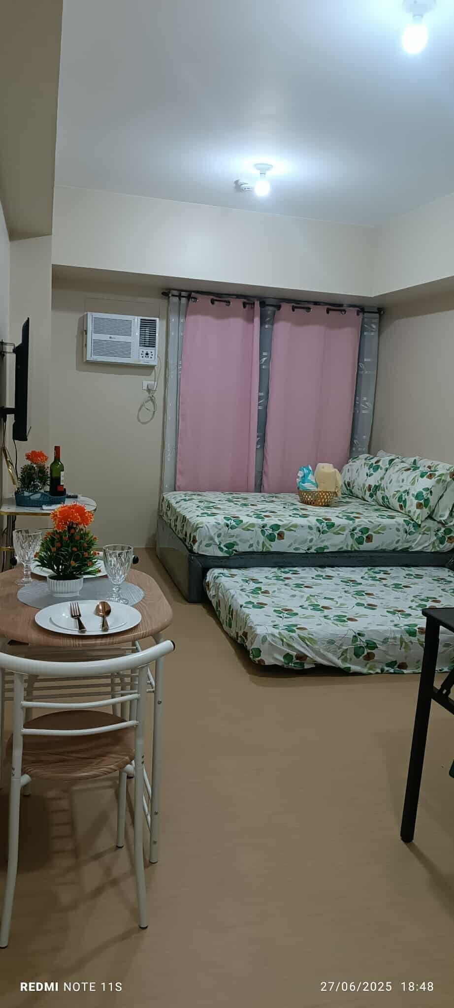 Short walk from Malls, Supermarket and Restaurants This studio type unit also offers the following, to wit 🍳 can cook 🛜 fast wifi 🛏️ very comfortable mattress (queen size bed) 📺 55" android tv 🚿 hot shower available ☑️ airconditioned ☑️ 24h security ☑️high speed elevators 🅿️ pay parking lots within the bldg.(₱300/night) 🏪 24h shops nearby, convenience store 🪑2 seater sofa 🍽️Kitchen and utensils 👩🍳microwave