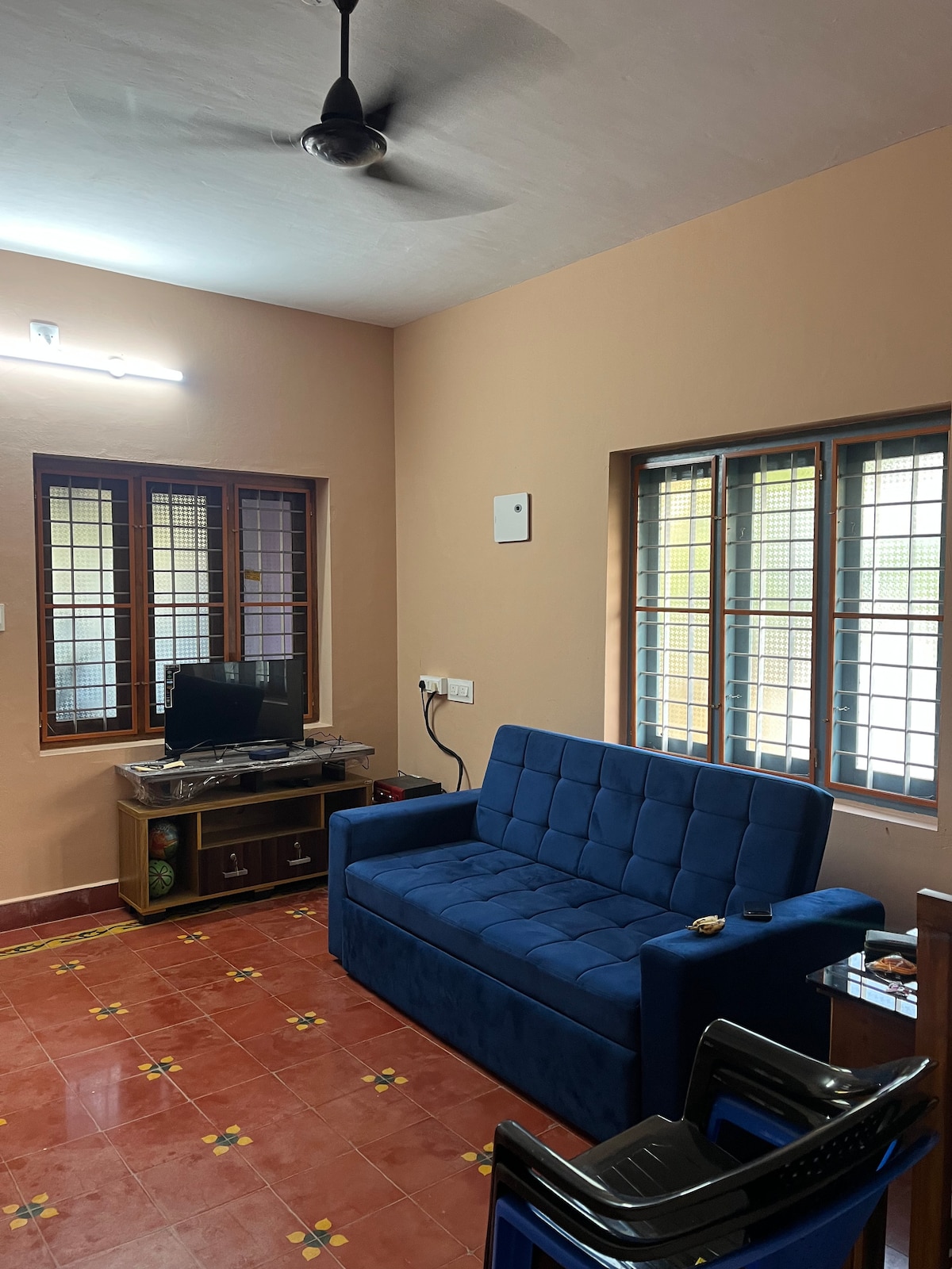 Welcome to our 1630 SqFt property which is on 17,000 SqFt surrounded by a garden filled with flowers and small fruit trees. Inside, you'll find 3 bedrooms with attached bathrooms, hall, and kitchen with water purifier, utensils with gas connection. You will also get WiFi, cable TV, AC and geyser. Please note that we do not allow smoking, bachelor parties or excessive alcohol consumption, as we strive to maintain a peaceful atmosphere for our guests. Enjoy the peaceful surroundings.