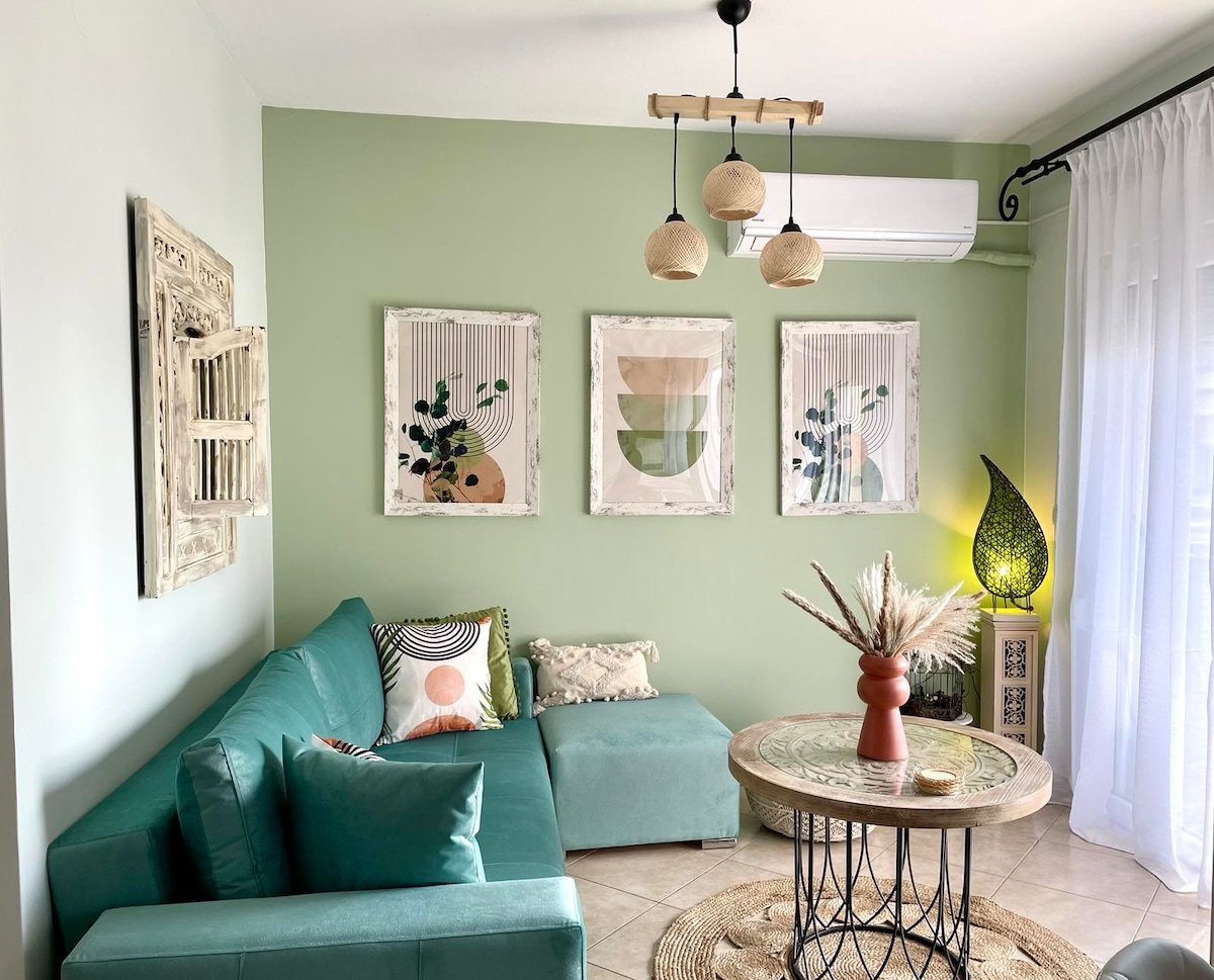 Καλαίσθητο διαμέρισμα 47 τμ., 2 δωμάτιων σε φιλική γειτονιά με άνετη βεράντα και έπιπλα εξωτερικού χώρου για χαλάρωση! Το διαμέρισμα βρίσκεται 5 λεπτά μακριά με το αυτοκίνητο από το κέντρο της πόλης και 1km μακριά από την πλησιέστερη οργανωμένη παραλία που προσφέρει ένα παραθαλάσσιο εστιατόριο και καφέ μπαρ. Η μοντέρνα διαρρύθμιση σε συνδυασμό με την καθαριότητα των χώρων σε μια ήσυχη και γαλήνια γειτονιά είναι αυτό που θα κάνει την εμπειρία της διαμόνης σας μοναδική και αξέχαστη.