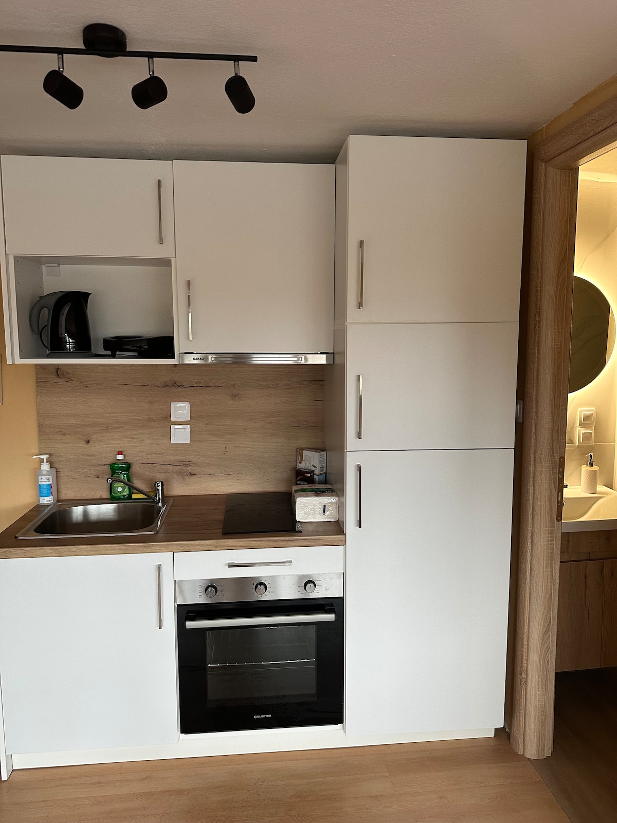 Modern seafront apartment (45m2) with large balconies that literally "touch" the sea. Enjoy unique sea views, amazing sunsets and a cozy sandy beach. Bright and tastefully decorated interiors with one separate bedroom with double bed, open plan kitchen, bathroom with shower and a comfortable living space with modular sofa bed that becomes a proper double or two single beds. The apartment can accommodate 2 guests.