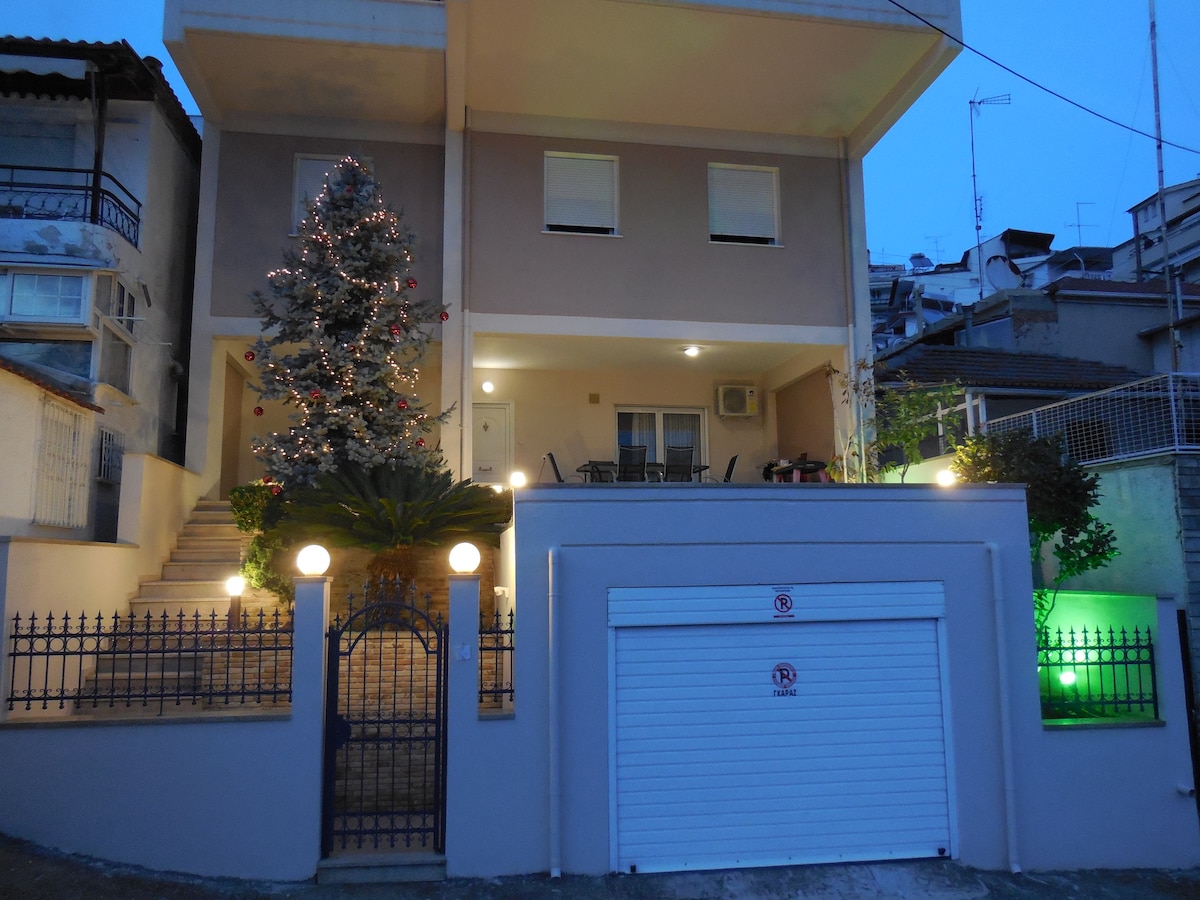 You can relax in a place surrounded by plants, at a close distance (5-10 minutes by feet) from the centre of Kavala. You can also enjoy your cofee or meal on the nice and cosy porch of a garden with aview of the sea. Do not think about parking your car because you have an individual closed garage.The garage is 4.80 meters long and the garage door is 2.75 meters wide and 1.76 meters high.