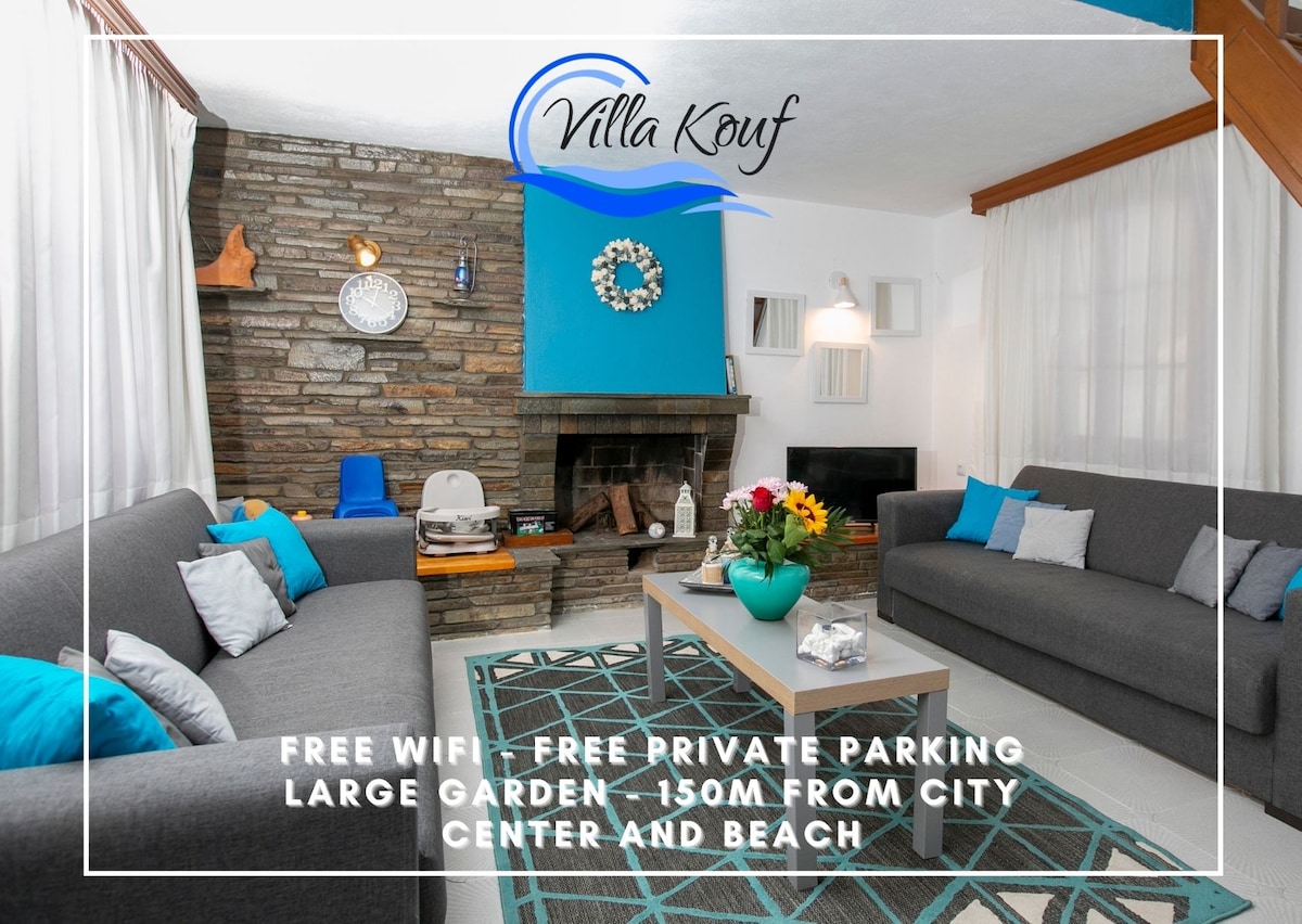 Perfect family house for vacation located less than 100m. from the beach. It is a two floor apartment (ground floor-first floor).The house consists of two bedrooms and in every bedroom has one double bed and one single bed. It also has a child's bed. In the living room there is an open single bed (if necessary), fully equipped kitchen (microwave,oven,fridge), it has one bathroom and one WC, washing machine, iron, and also A/C, fast internet connection,satellite TV for each country,a garden, BBQ.