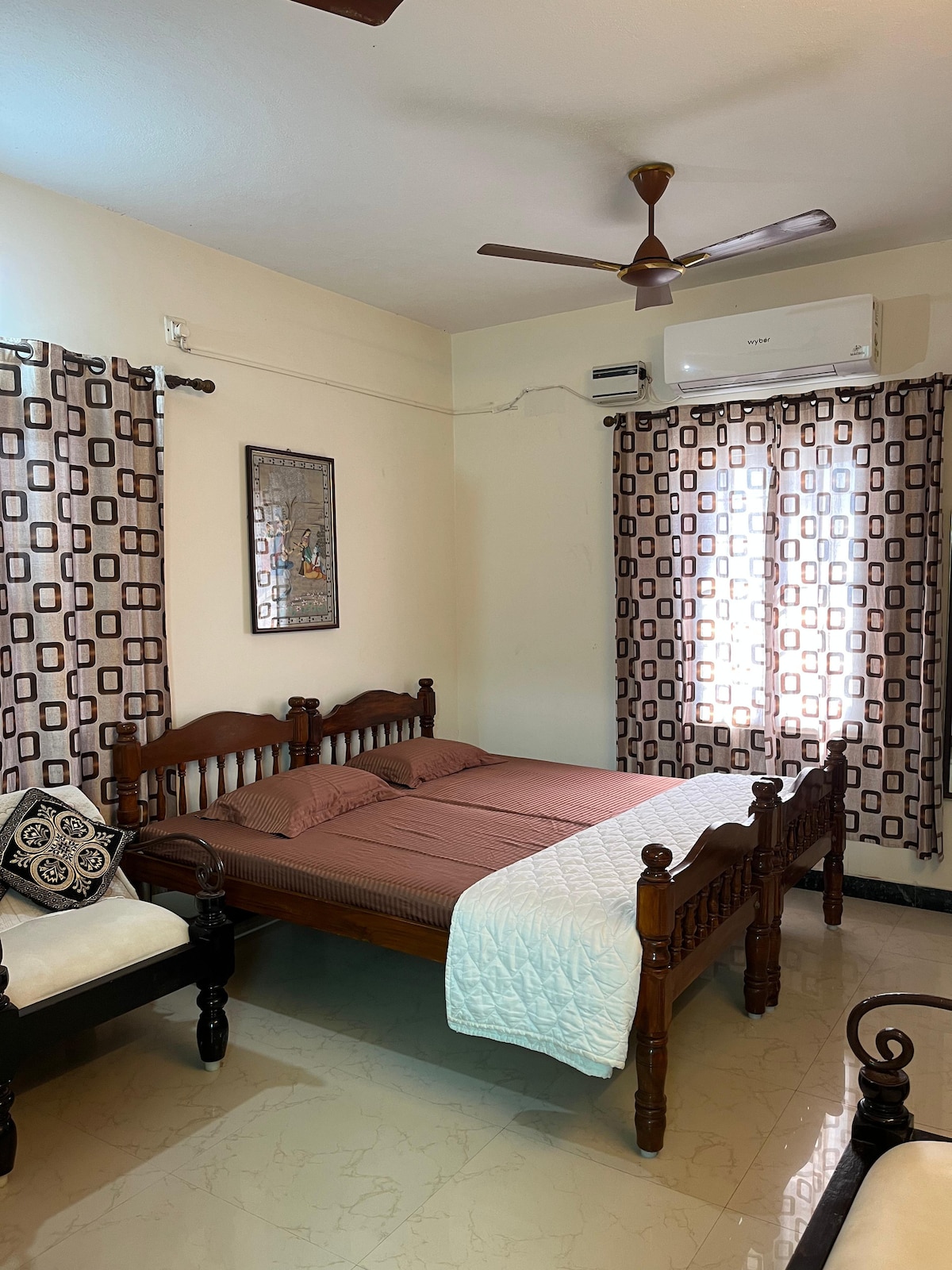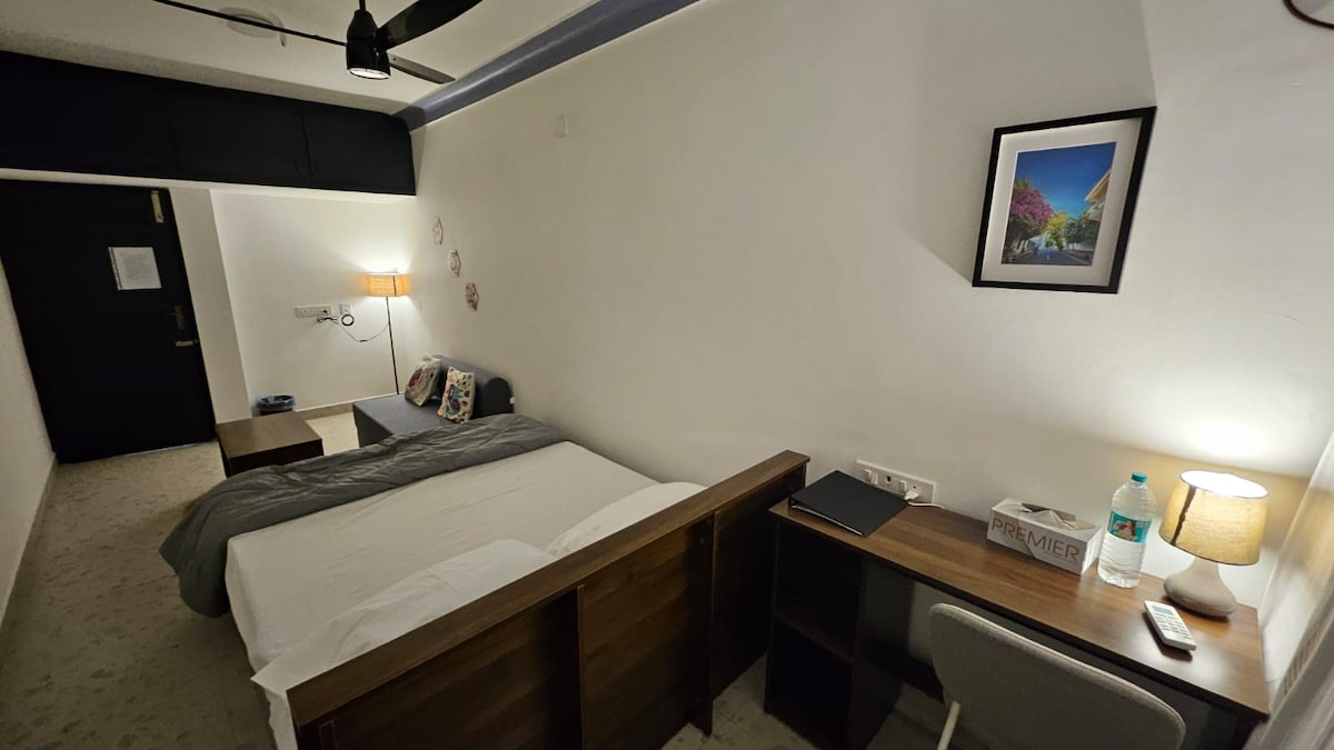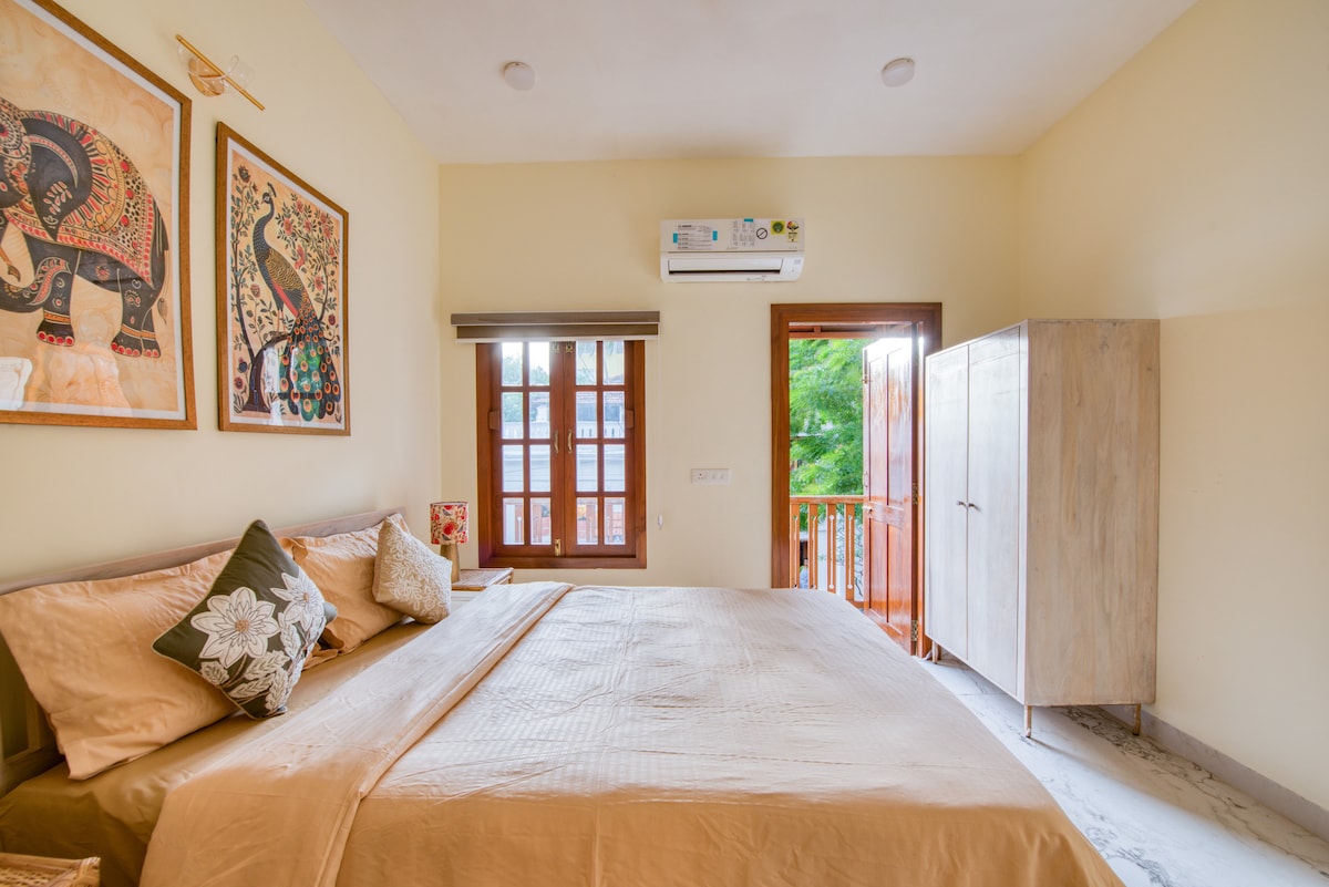 5-minute walk to the sea breeze, sunsets, and waves. Stay in the heart of Pondicherry’s most lively neighbourhood, surrounded by Cafe, pubs,nightlife, and coastal charm. ⚠️The price shown is for Two guest only ⚠️1st Floor, no lift ⚠️Street parking only Couple friendly Air-conditioned bedroom with a kitchen to Cook. Designed for travellers who want comfort + location without compromise. High speed Wi-Fi Free Netflix and OTT Balcony walkway