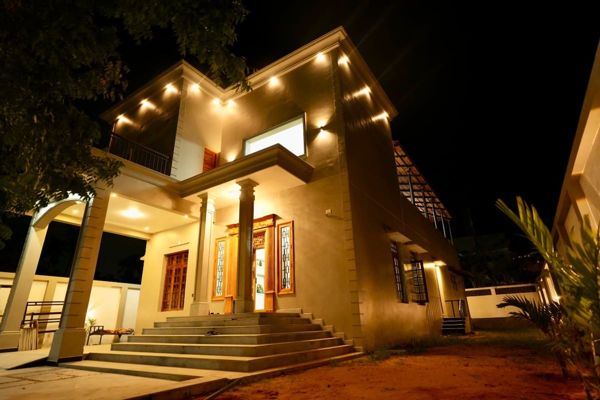 Luxury 4-bedroom, 2-floor holiday home near the beach in Pondicherry Ideal for friends, families, and large group stays 3 bedrooms on the first floor and 1 bedroom on the second floor Large sofa-cum-bed on the second floor 3 bathrooms for comfortable group living Spacious second-floor terrace for BBQ and gatherings Pool table, 100-inch projector with Dolby sound, and PlayStation 1000 Mbps high-speed Wi-Fi for workations Just 2–3 minutes walk to the beach, cafés nearby, bus stop outside