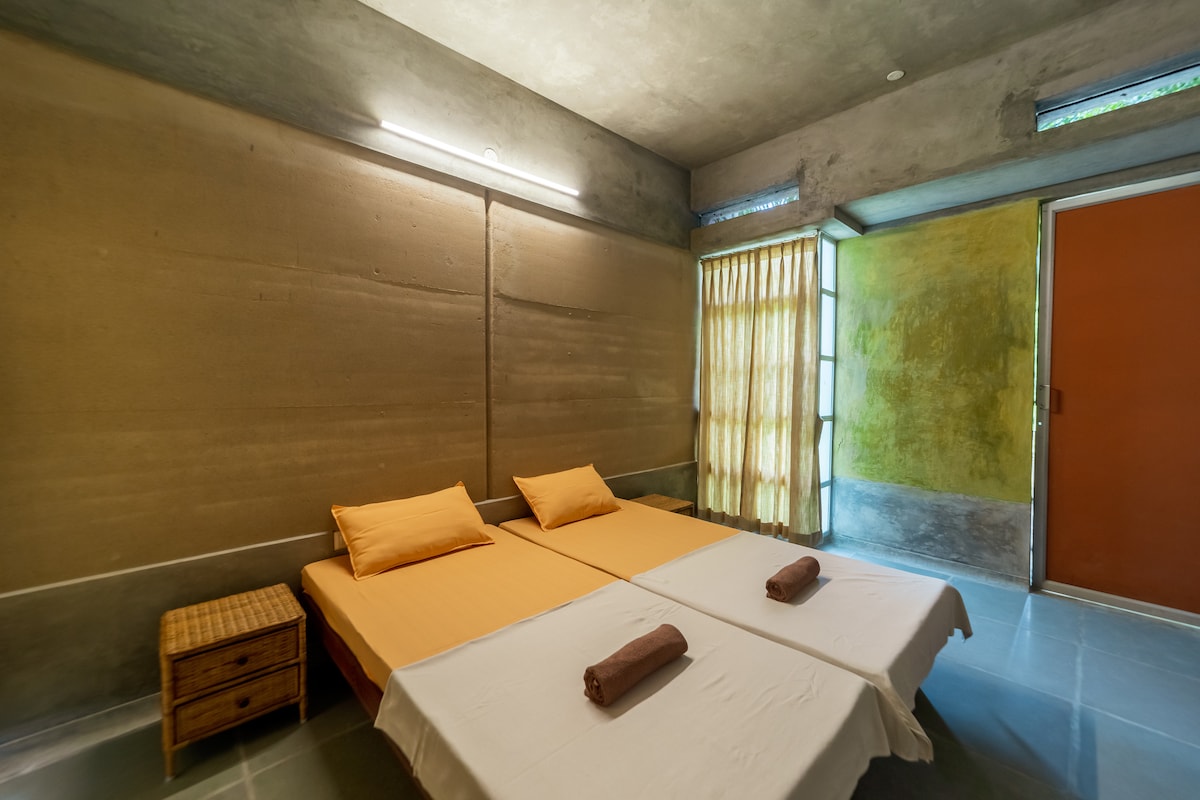 Escape the ordinary! Stay in our unique, eco-friendly room built with compressed earth for a naturally cool and quiet retreat. Enjoy fast Wi-Fi, private bathroom, fridge, and free two-wheeler parking. We offer a peaceful, exclusive Pondicherry experience, with custom breakfast available on request. Book instantly and discover the difference.